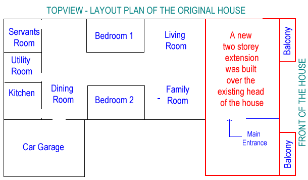 My next door neighbour sold their house to a weathy family. They also `chopped off' the head of their house (see picture above) and build a grand extension similar to what my grandfather had built. (I was little then).