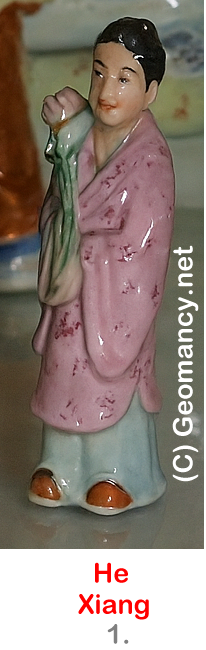 Geomany.net Collection of the Eight Immortals Figurines - 1960's The Eight Immortals (八仙, Bāxiān) are some of the most famous figures in Chinese folklore and religious tradition, especially in Daoism. They are legendary humans who, through virtue, discipline, wisdom, or unusual fate, achieve immortality and transcendence. Together they represent different ages, genders, social classes, and walks of life, symbolizing that anyone can attain spiritual perfection. Below is an overview of their origin, symbolism, and each immortal’s story and attributes. A. Origins and Cultural Background - Tradition: Mainly Daoist, but they also appear in general Chinese folk tales, operas, novels, paintings, and temple art. - First mentions: Variants of immortal figures like them appear in the Tang dynasty (618–907 CE), but the group of Eight Immortals became standardized by the Song–Yuan periods (10th–14th centuries). - Core idea: They are humans who became xian (仙) – transcendent beings living in a refined, spiritual state, often in islands like Penglai or in heavenly realms. - Symbolism: - Eight directions, eight kinds of human experience. - Each has a special object (法器) that embodies their power. - Together they often symbolize blessings, long life, prosperity, and protection. They are frequently depicted crossing the sea, each using their own magical object – Eight Immortals Crossing the Sea (八仙过海, Bāxiān guò hǎi) – which symbolizes ingenuity and relying on one’s own strengths. B. The Eight Immortals – Overview The canonical Eight Immortals are: 1. He Xiangu (何仙姑) – the maiden immortal 2. Lan Caihe (蓝采和/藍采和) – the eccentric, often gender-ambiguous immortal 3. Li Tieguai (李铁拐/李鐵拐) – the lame beggar with an iron crutch 4. Han Xiangzi (韩湘子/韓湘子) – the flute-playing scholar 5. Cao Guojiu (曹国舅/曹國舅) – the imperial relative with official tablets 6. Lu Dongbin (吕洞宾/呂洞賓) – the sword-wielding scholar-swordsman 7. Zhang Guolao (张果老/張果老) – the old man riding a white donkey backward 8. Zhongli Quan (钟离权/鍾離權) – the elder general with a fan Each immortal has their own legends and symbolic object. 1. He Xiangu (何仙姑) - Role: The only consistently female member of the Eight Immortals (Lan Caihe is sometimes depicted as female but often ambiguous). - Iconography: - Often shown holding a lotus flower, symbolizing purity and spiritual enlightenment. - Sometimes carries a lotus basket or a peach (symbol of longevity). - Story highlights: - Said to have been born in the Tang dynasty. - As a girl, she chose a celibate, ascetic life, refusing marriage. - In some versions, she was instructed in a dream to eat powder made from mica or mother-of-pearl, after which her body became light and she could travel freely between realms. - Symbolism: - Purity, chastity, spiritual refinement. - Protection for women and young girls; sometimes invoked for health and safety in the family. 2. Lan Caihe (蓝采和) - Role: The most mysterious and unconventional of the Eight. - Gender: Often ambiguous – depicted as a young boy, a girl, or an androgynous figure. This ambiguity itself is symbolic of transcending worldly categories. - Iconography: - Wears tattered, mismatched clothes and a loose belt. - Carries a flower basket or string of flowers and frequently wears only one shoe or goes barefoot. - Sometimes depicted playing clappers. - Story highlights: - Known as a wandering street singer or entertainer, often drunk or acting foolish. - Suddenly ascends to immortality—some versions say they stepped onto a crane or simply soared into the sky. - Symbolism: - Detachment from material concerns. - The idea that spiritual truth can be found outside social rules and appearance. - Patron of performers and the marginalized. 3. Li Tieguai (李铁拐) - Name meaning: Li with the Iron Crutch. - Iconography: - A lame beggar with an iron crutch. - Carries a gourd (葫芦) from which vapors, medicines, or spirits emerge. - Story highlights: - Originally a handsome, devoted Daoist cultivator who could exit his body to commune with the divine. - Once, while his spirit was away, his disciple cremated his body, thinking he was dead. - Returning, Li had to enter the only nearby body – a disabled beggar’s corpse. Instead of lamenting, he accepted it and continued his cultivation, achieving immortality. - Symbolism: - Compassion for the sick and poor; he is invoked as a healer. - Teaches that the outer body is not as important as inner cultivation. - The gourd symbolizes healing medicines and the ability to store and release spiritual power. 4. Han Xiangzi (韩湘子) - Role: Youthful immortal, associated with music and learning. - Iconography: - Holds or plays a bamboo or jade flute. - Often depicted amidst nature — flowers, birds, or mountains. - Story highlights: - Traditionally said to be the nephew of the famous Tang scholar Han Yu. - Han Yu was a rationalist critical of religion; Han Xiangzi represents the other path, embracing Daoism and mysticism. - Stories tell of him using his flute to cause flowers to bloom, animals to dance, or to reveal truths. - Symbolism: - Harmony of nature and humanity. - The power of art, especially music, to transform the spirit. - Patron of musicians and scholars who seek a freer, more intuitive understanding. 5. Cao Guojiu (曹国舅) - Title meaning: Imperial Brother-in-law or Imperial Uncle Cao. - Iconography: - Wears court robes. - Holds jade tablets or clappers symbolizing his official rank. - Story highlights: - Said to be the brother of an empress (or high-ranking consort) of the Song dynasty. - A relative committed grave crimes, and Cao Guojiu, ashamed and unable to bear the corruption, withdrew from court life to seek spiritual cultivation. - Eventually met immortals like Lu Dongbin and Zhongli Quan, who guided him to enlightenment. - Symbolism: - Moral integ