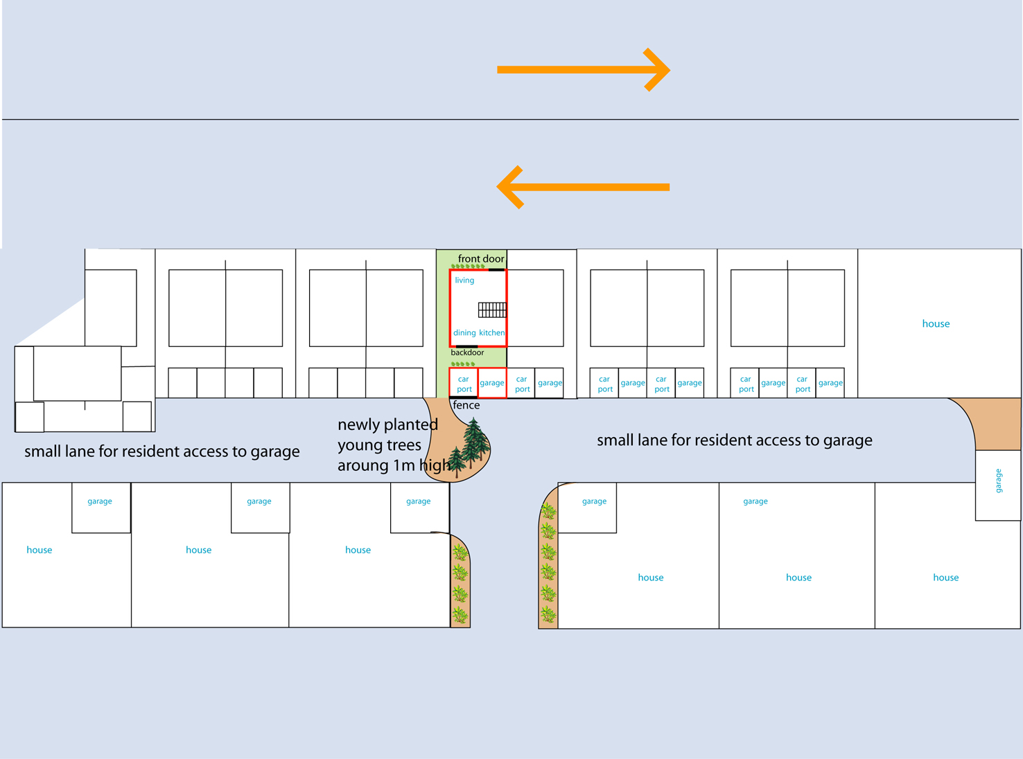 Dear Cecil, I really hope you can give us general advice because I'm really confuse. I have put in a deposit on a new two-story duplex. I really like the house, it's bright, in a great location and more importantly we can afford it. It has a separate garage and driveway at the back. To access the driveway/garage, there's a small lane at the back (I've attached a drawing to explain it better). The problem is: 1. half of the garage (a quarter of the house) are on T junction from the small lane; 2. there's a small lane at the back of the house. I've heard that it's not a good thing to have a house "sandwiched" by two road because there's no support for the house. 1. Is it help that there's an island of small trees at the back of the house? 2. And can the garage be the support for the house based on the fact that the garage is a whole different building? 3. Will the T junction at the back be a problem? Your general advise will be greatly appreciated. Warm regards.