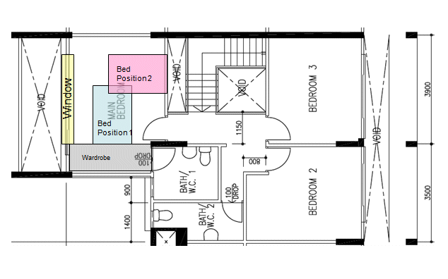 Hi Master Lee, Here is the layout of my bedroom. Bed 1 is located directly infront of door, bed position #2 will have legs pointed to window. fyi, my hdb is EM and outside the window is a empty field (no adjacent block). Appreciate your advice. tks!