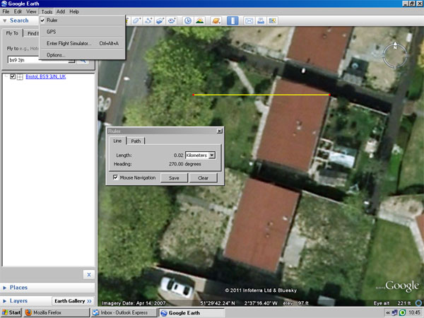 3. Thank you so much for your reply I very much appreciate it. It has made things very clear for me and now I can proceed with confidence. I do have a very good compass and as a matter of interest if you have Google Earth and then zoom down to look at your property, at the top of the page in "TOOLS" there is an option for "RULER" click this and the click two points on your property this will give you a very accurate direction of your property. I have double checked this with my compass and it is very accurate. Of course not to be relied upon but as a way to double check it is invaluable. My best regards and thanks again. Dale.