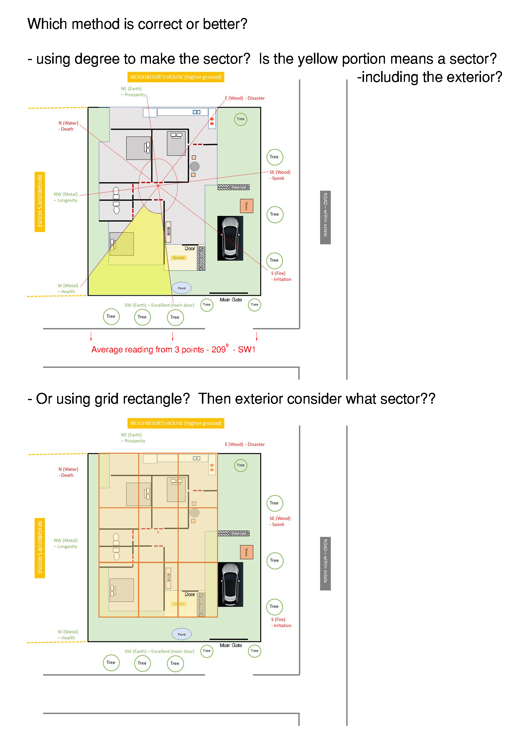 Dear Masters LeeWhich is better way of drawing the sector in my attached file? How do I consider the exterior of the house (landed property)?