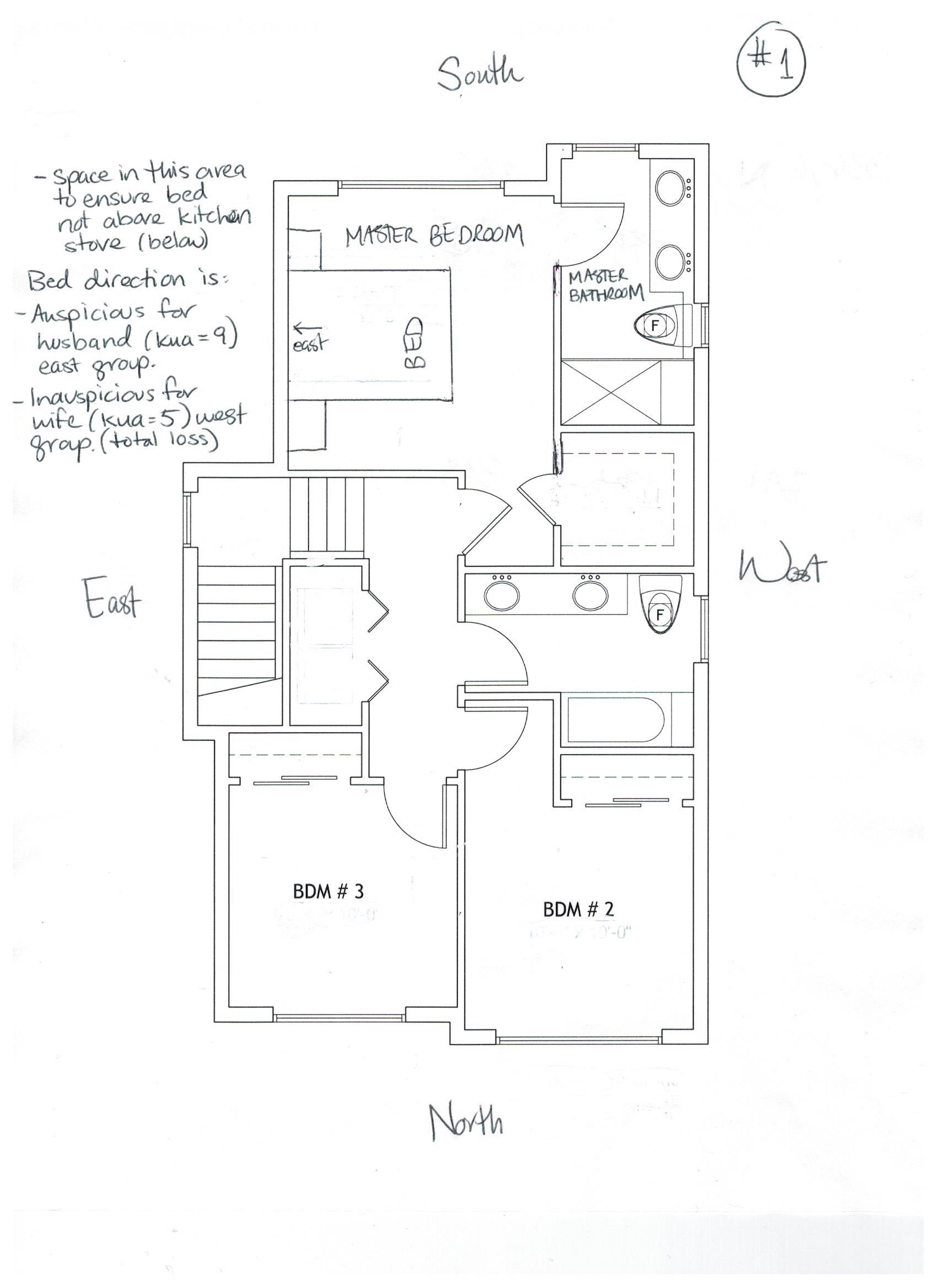 In layout #1, we would be sleeping east which would be auspicious for my husband but not for me.