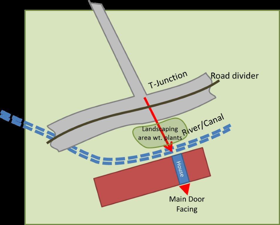 Dear Master Lee, Recently i came across a nice terrace house that i intended to acquire. I have done a pretty thorough audit at the front of the house to make sure there is no Sha pointing toward the main door but only to find out that there is an inner road pointing at a certain angle as shown, toward the back of the house where a river located (see attached picture) The T-junction can be visible from outside at the balcony at the back of the house but not from inside thereof. The distance from the T-junction to the house is approx. 60m and the width of the river is approx. 8m. Between the river and main road there is a landscaping area with plants. I would like to seek Master Lee's expert advice whether the aforementioned T-junction will have any impact to the house on the other side of the river. Please refer to the picture for better understanding. Appreciate much for your advice to my query. Thanks a lot.