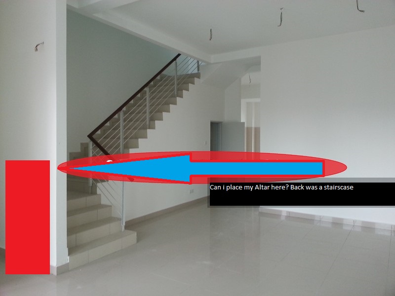 I do aware altar should not place in-front of staircase even block by a wall, but in this case, If the stairs "mouth" wasn't pointing to the altar wall, is this allow? Thanks in advance