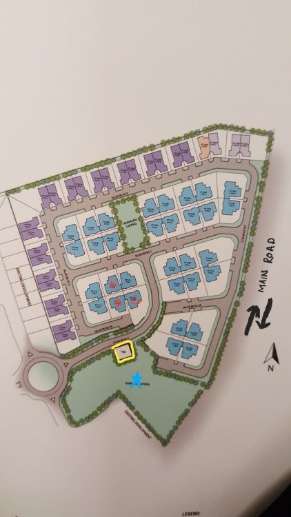 The area marked in "blue star" is a small playground for the neighbourhood. Our preference is unit B but should the fengshui for unit A is better, then we will reconsider.