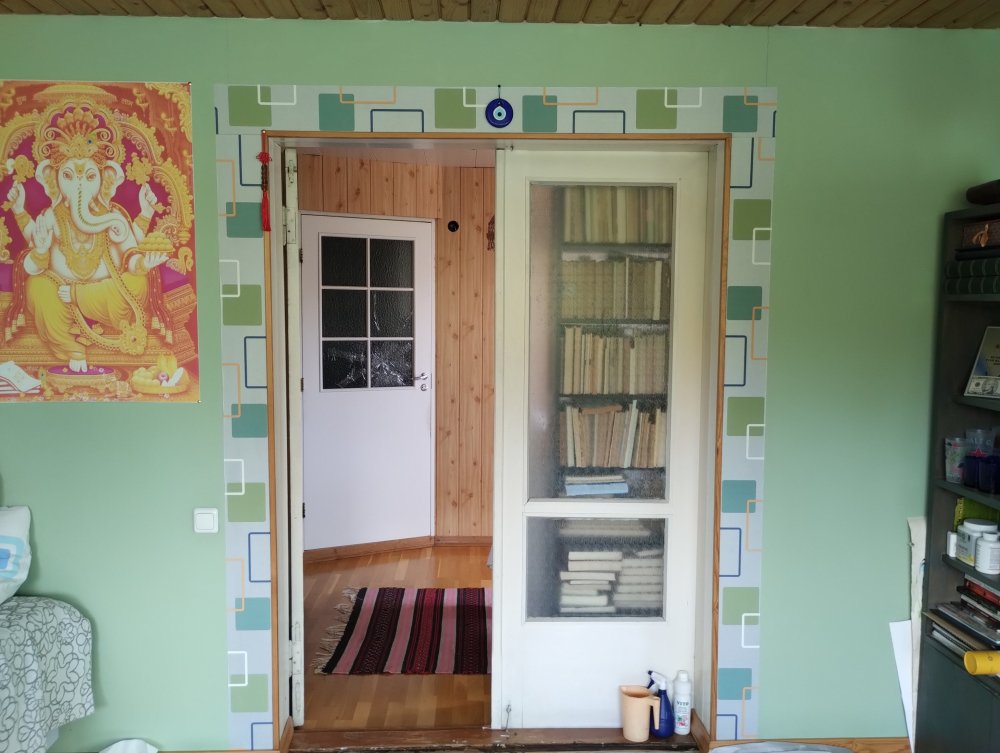 2. Hiya! I've been meaning to replace the dual glass doors to my room with a single solid wood one for a long while. Based on a few other aspects I was thinking to place it on the half where the bookshelf is currently covering some of the doorway. However, I wanted to take feng shui into account and I remember reading that the door to the bedroom should not be opposite from the bathroom door (the one with the broken glass). In my case drawing a straight line from the proposed door spot lands semi on the opposing wall/brother's door. However, since the bathroom door/wall has a different angle, then drawing a straight line from there lands directly where my proposed new door would be. Placing the door on the other half (like the door that is in use currently for my bedroom) has the opposite effect, i.e direct line from my bedroom door lands on the bathroom door, but direct line from bathroom door would land on the newly created wall. Which logic applies/which option is better? If the effect is similar, then what's the best remediation strategy? Curtain on the bathroom door (does that go outside or inside)? The bookshelf will be placed on the half not in use/where the new wall will be. Many thanks!