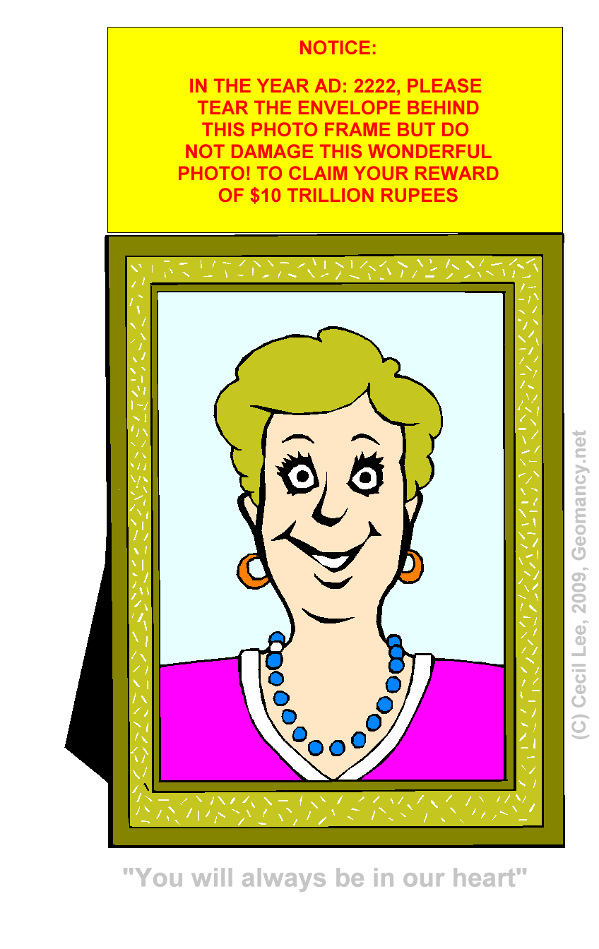 This fictional person made sure that his mum is still "seen" at least until the year AD: 2222. Whoever displays this photo intact till 2222 will get a reward... not sure.. how much is the inflation thou.... well... better than nothing rite?