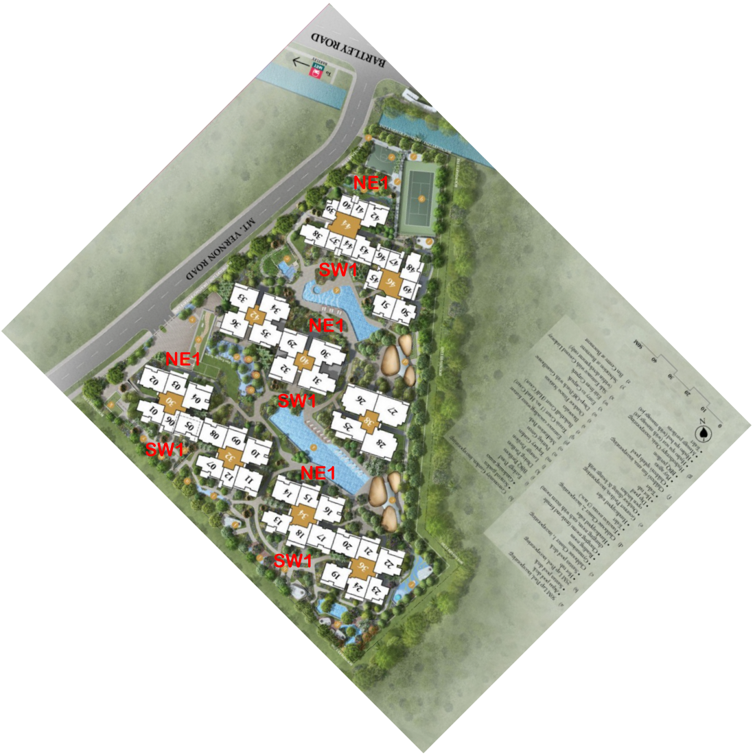 Utilize NE1 and SW1 orientations. To date, I have visited multiple blocks/stacks and determined that the readings ought to be NE1 or SW1 oriented, rather than N3 or S3. Furthermore, analyses conducted using onemap.sg identified it as NE1 rather than N3.