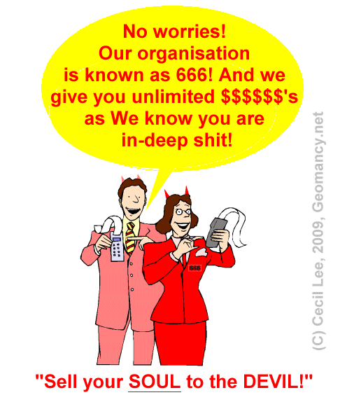 Posted April 12, 200916 yr Staff Does the 666 Organisation provide us with a Credit (Charge) Card? Is there any limit and expiry date? No limit. Yes, the expiry date is equal to the day when we gain your SOUL!