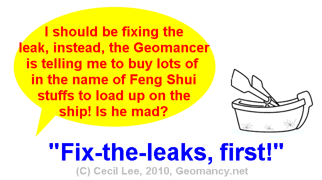 Posted September 12, 201015 yr Staff These are some of the considerations:-1. If you are looking at a home / stack / apartment from a Feng Shui point of view:-1.1. Feng Shui is based on two major schools:-1.1.1 The Shapes and Forms : The landscape, the site, the building or block, the stack1.1.2 Compass School: Flying Star and Eight House2. The familar lingo: "LOCATION, LOCATION, LOCATION".2.1 Not only half the battle is won, but rather the FULL battle is won, when a property has good: Location, location and location.2.2 And this L, L, L falls under? The Shapes and Forms Feng Shui (full-stop).3. Thus, if one has excellent L, L, L no need to even consider the other Compass School Feng Shui to squeeze out one's luck.3.1 Thus in this senario, even if say the home /unit is "east" facing so what, the three L's can overcome or overwhelm factors relating to the Compass School of FS.4. In 1970's to even as late as 1995; many like yourself, buy a home (unit) then OOPS! Nowadays, for every OOPS! there are 20 percent of Ahs! Ahs!4.1 This means that it is more worthwhile for those who want to play safe to get things like "Can or cannot buy" type of Feng Shui service. And many nowadays, do this upfront.5. Anyway, as I mentioned, let's hope that your three L's are acceptable or good. And if you want to squeeze out more luck, may be use the Compass School Feng Shui.6. Why Shapes and Forms is more superior than the Compass School Feng Shui:-6.1. Just imagine, one can "beautify" a home, even pathe the home with gold; but when we walk out of the "four walls" of the home; theLocation, location, location is like "shit" everything else outside is "crumbling".6.2. The concept of "Greed begets greed" or "everything in the name of Feng Shui". Here, many have being exploited by geomancers (yes! Geomancers). Many of them are their own "Feng Shui emporium". 6.3. Where, you will not be surprised, that like the example as mentioned under 6.1; they simply push many so called Feng Shui products: where instead of helping to fix "leaks : wealth health" type of leaks, one laden one's home with useless product.6.4. Imagine, this, this fella owns a ship. And below the water line, there are so many hairline cracks. Instead of fixing the leaks; he was told to further load up his soon to be sinking ship with more useless Feng Shui products.7. In the above example. won't the ship sink further. Here, dead man tell no tales. The unscrupulous Geomancer, will find another victim! 8. Morale of this story: When the buying stops, the selling can! And more importantly : Fix the leaks, first! Quote On 9/12/2010 12:24:13 AM, Anonymous wrote:Hi Cecil,i have purchased a unit atWaterfront Waves, stack 18. Myfamily are West group. What arethe things we can do to optimise the"qi" factor for me and my family?Appreciate your opinion.thank you!JTOn5/17/2009 7:49:35 AM, Cecil Lee wrote:1. Under the eight houseconcept, it is:-1.1. It isnice-to-have thehome (apartment)suitable tothe breadwinner (usuallymaleperson).1.2. It is alsonice to havefamily members havingbedroomin their good sectors.2. It is called "NICE-to-HAVE"and not a MUST-have.VickyL. wrote:HiMe and my husbandare bothWEST group people and wearelooking at stack 25 forWaterfront wave. Youmentioned previously that weneed to check the 8th house ofinfluence for wealth leakposition. How do I know whereisthat ?Also my 2 kids are EAST grouppeople. Any adviceon which rooms will besuitablefor them (studies andhealth) sincethe house isgenerally suitable forWESTgroup people.Thanks3. For yourchildren, it wouldbe "nice-to-have"theirbedrooms located in say @North, South, SE and/or East.And if possible, their studypositions could face thesedirections. Again, this isnice-to-have not a must have.4.This Eight House concept isallabout NICE-TO-have, and ifpossible, should besuitable to the breadwinner.5.Other than that thisconcept, doesnot provide anycures. How to?Either onestays in a good sector ornot,there is no way to changethat. In addition, if onecannotface a good sector(e.g. for study),that's it,simple.