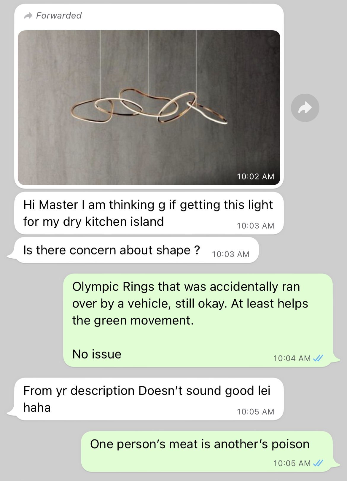 March 9, 20205 yr Author Staff 2 minutes ago, alexlo said: Master Cecil, Can table top hang only 2 pendant light instead of 3? 1. Frankly, the above resource meant to show the symbolic relation of three lights in a straight row representing "three joss-sticks" praying to the dead. That's all. 2. Thus, there is really no symbolism associated with two, one or even five lights. 3. Of course, four pendant lights again has more to do with the Cantonese association of 4 with death. 4. If one wants to go ahead. 5. Common sense: 5.1. Nowadays led bulbs are light weight. 5.2. Distance between the 2 pendant lights 5.3. Glass material or abstract plastic 5.4. Based on common sense, if a home is windy and if the pendant lights are close to each other + light weight.. hope not that they become an unusual "wind-chime" in the wrong sense of it. LOL