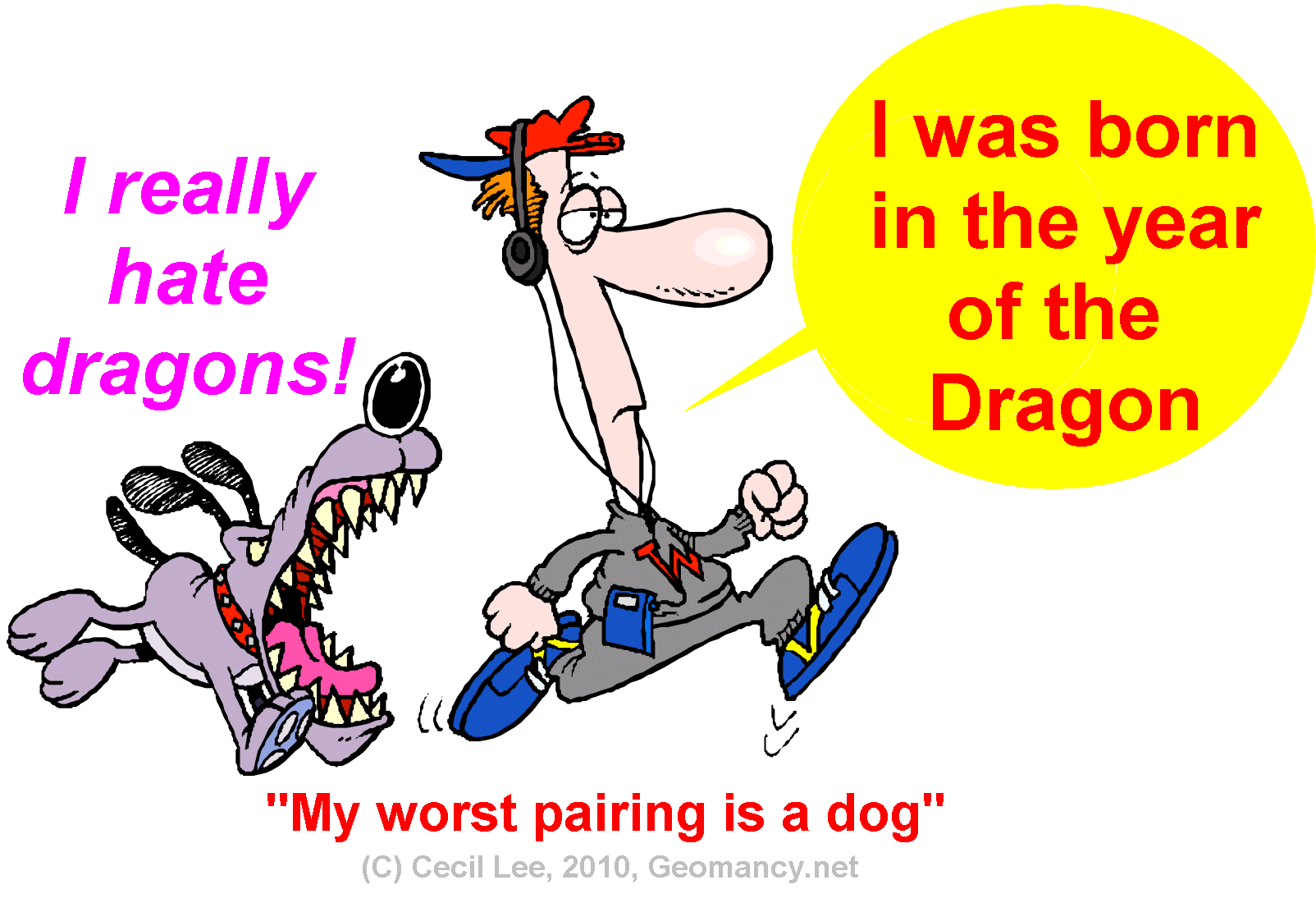 Posted March 8, 201015 yr Staff Under the Chinese zodiac signs, for the Dragon:Dogs are considered the worst pairing. Dude! The dog is my worst enemy!