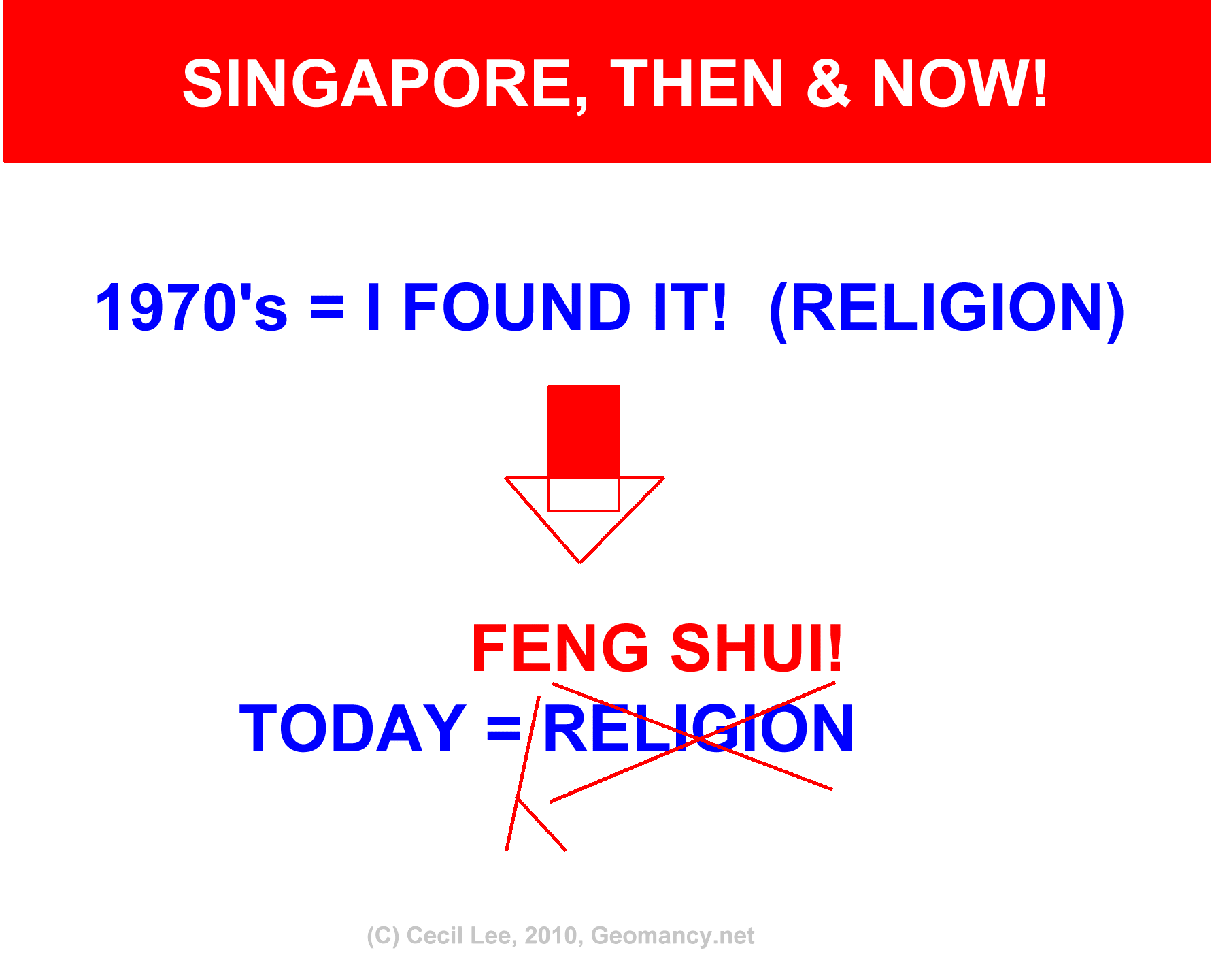 Posted January 28, 201015 yr Staff In the mid-1970's; I recalled one day going around Singapore and every where; one sees this teaser: " I FOUND IT!" And later, most of us found out that it was a teaser for a "Christian Advertisment". Today, instead, many found : Feng Shui! Hahaha!