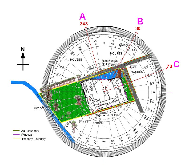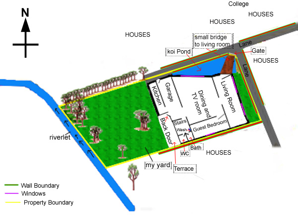 Posted May 10, 201015 yr Dear Master, I really appreciate your website. Plenty of useful information.I'm having a great difficulty locating the facing direction of my house. There is a gate infront of the small bridge above the pond leading to my living room which we use very rare. It's the garage door we use all the time and also the back door. Due to the presence of the riverlet (small river) in my backyard and a koi Pond infront of my house, it's making it more difficult to locate the facing direction of my house. Please note that the yellow line defines the boundary of my property. The lane does not have so much traffic, maybe around 30 cars in a day. Furthermore i have a home office situated just above the Dining and TV room. In this case, where should I face while sitting in my home office? I have difficulty finding the sections in the home office since it's within the house and door opposite to the window facing the Guest bedroom. Can you please help me? Please refer to the picture for clarity.Regards and Thanks.