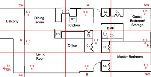 Posted August 4, 201015 yr Ive been studying Feng Shui booksfor awhile now, and have figured out the directions, etc, for my apartment, BUTwhen I look at examples of how to layout the Flying Star grid there is aninconsistency: some indicate the Flying Star energies affect the entirequadrant while others extend or contract the quadrant according to room layout.So, for example, in my apartment below, does the North direction and FlyingStar 6/6/2 cover the whole of the northern quadrant and therefore includesections of my bathroom, master bedroom and my guest bedroom OR is it confinedto the bathroom, with the NW 1/2/7 extending throughout the guest bedroom andthe NE 8/4/9 extending throughout the whole of the master bedroom? Does the2/1/6 of my central quadrant cover the area I use for my office, or is itconfined to the hallway, with the eastern 4/8/4 extending into my officearea? Any help greatly appreciated. Thanks!