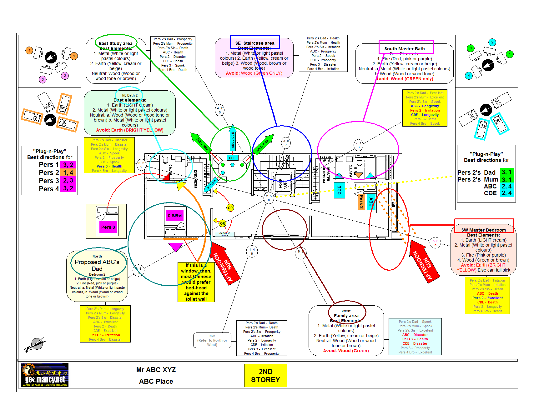 Posted August 4, 201015 yr Staff Further to what I had mentioned, a pie chart is much easier a tool to "define" where a room or place is located. For example in the same attachment, the location of the Master Bedroom, the Master Toilet, the Staircase area, the Dad's bedroom, Dad's bathroom can be clearly be defined from the pie chart. Only two sectors: East = Study and West = Family area is less hazy and can fall into another sector. Please see attachment.