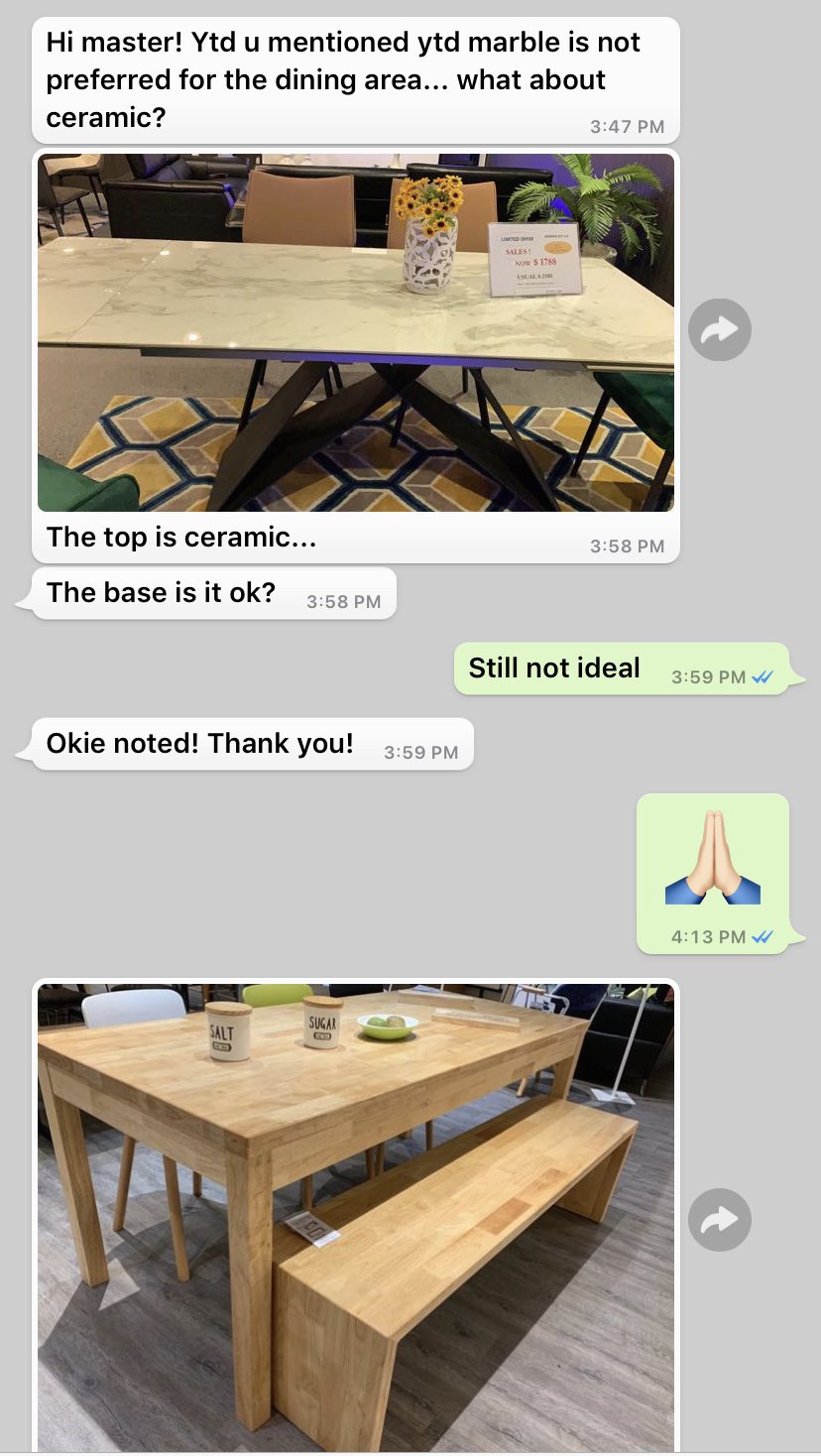 April 23, 20196 yr Staff For some homes, best to avoid a marble, granite or ceramic dining table In this extract of an apartment, the kitchen is within the #2 sickness and #5 misfortune/sickness. Thus it is strongly recommended to avoid a marble table. Same here for granite or ceramic table.