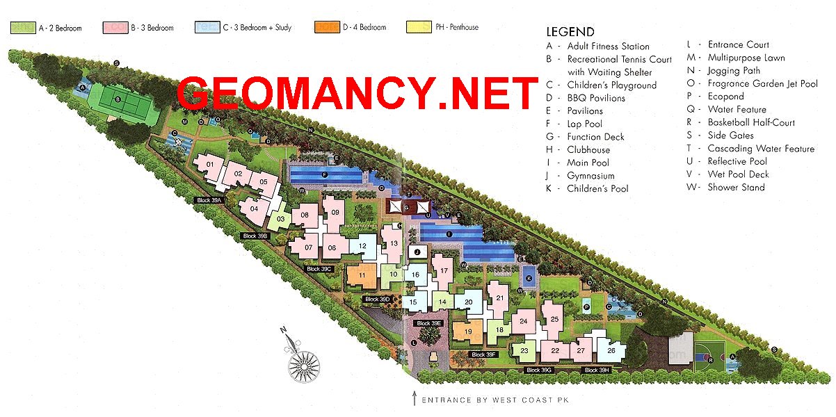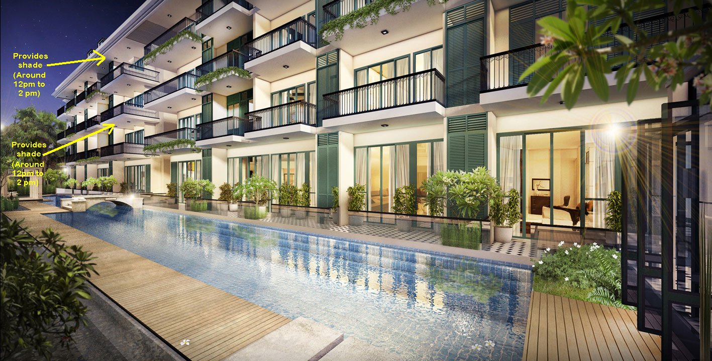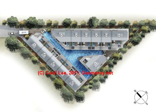 1. The bigger three bedrooms and a two bedrooms have pool view. And under Flying Star Feng Shui these stacks can be considered as under Flying Stars Period 8: SW1 facing.