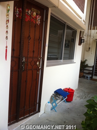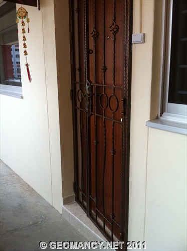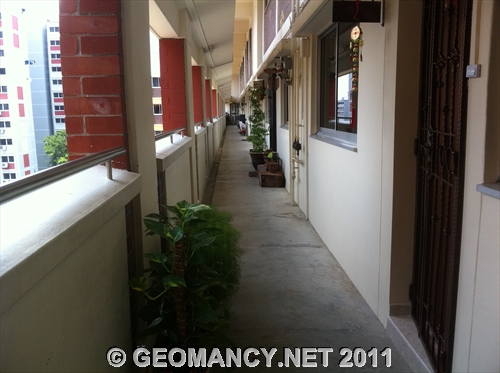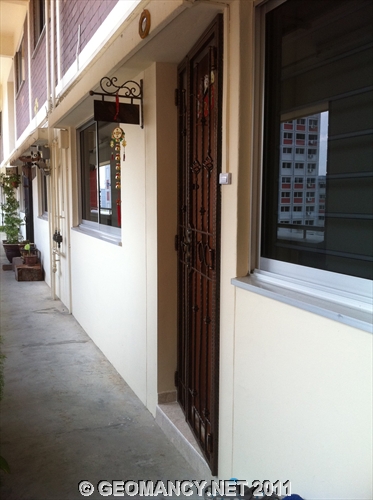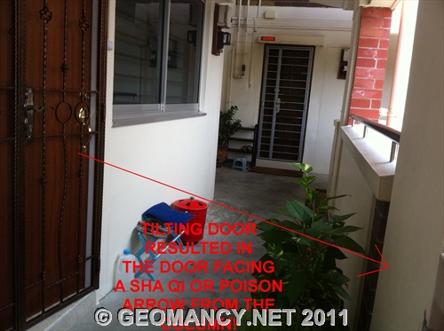 Posted October 6, 201114 yr Staff Today, while visiting a client's apartment. Came across a HDB mansionette (Executive Flat) that had it's main entrance door tilted.On further observations; actually, it is far better not to tilt the main door. As originally, the main entrance faces an "opening".After this person had tilted their main door; the main door faces the column wall. This results as a sha qi or poison arrow. Please see photos...