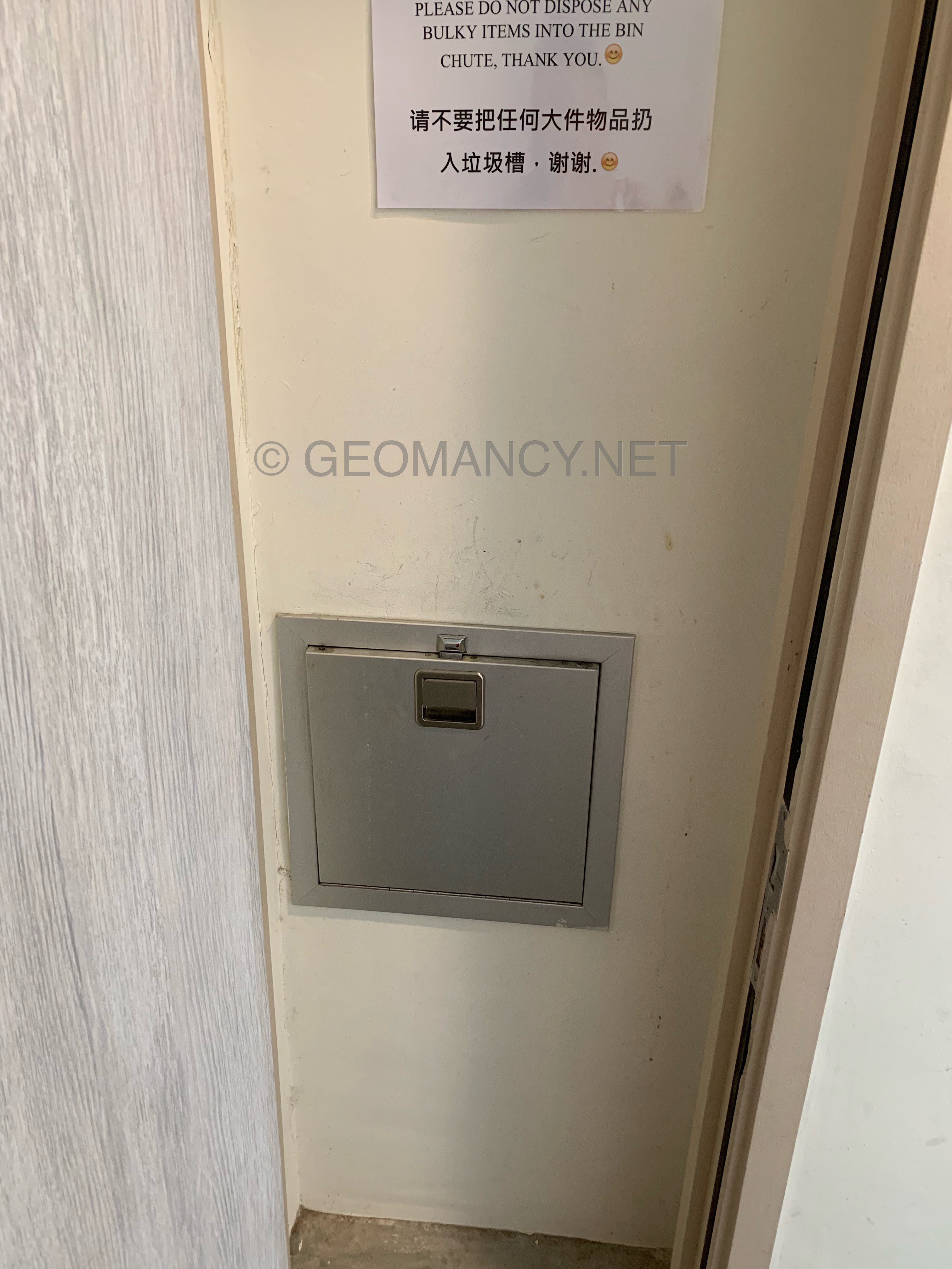August 19, 20196 yr Author Staff Another tilting gone wrong.. The Feng Shui Master tilted main door facing the rubbish bin. Hidden behind a door... I understand the couple moved in in 2016. Today, it seems only the female party lives, here. Her partner had left. The rubbish bin is hidden behind the door to the right of this photo:- A clear photo the the door.. to the right of this photo:- [Below] Why your main door was tilted to face me? Beats me ?