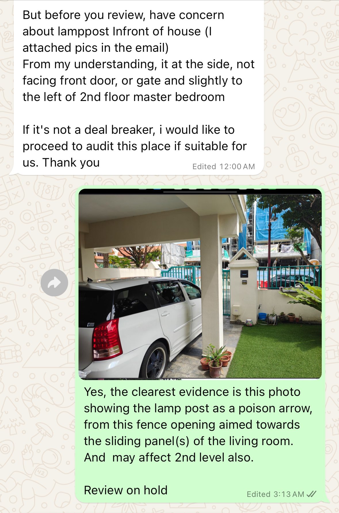 • Cecil Lee changed the title to Is it considered bad Feng Shui to have a lamp post positioned in front of a house and facing a gap in front of it?
