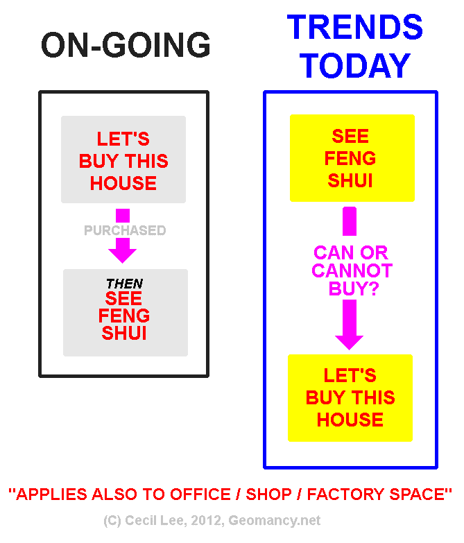 Posted June 19, 201213 yr Staff Today, more and more are seeking Feng Shui advice prior to placing a deposit to buy a home. Like I always say, this is a smart move indeed!Indeed, it applies equally to both looking for a new (resale) home and/or finding a new office / business space.Reference: under TOPIC 5/5 of this link:-http://forum.geomancy.net/phpforum/article.php?bid=2&fid=12&mid=30814&new=Like this link, it is often a fore-GONE conclusion, once they had taken up the space... Here, in my opinion, even GOD, can't help this business. Quote On 6/18/2012 3:54:51 PM, Anonymous wrote:"In my opinion, usually thereis more to it then just "maindoor facing clashing withhusband"These are someconsiderations:1. Phase I: Try to Findout as much as one can.1.1. Understand who is themain breadwinner. By defaultit in the Chinese culture; itis often the male head orhusband or hubby. BUT if thehubby is a homemaker, and thewife is the sole breadwinnerthen the wife should beconsidered, here as the mainbreadwinner.1.2. What are the best FACINGdirections for this mainbreadwinner.1.3. Understand what are thebest facing directions for themain breadwinner and allthings associated with bestfacing directions such as whatis meant by facingdirection(s) and what are thebest rankings say from now to2023.2. Phase II: Can or Cannot Buy2.1 If you are not confidentor prefer an expert advice;could engage a geomancer toevaluate the house and giveyou advice prior to placing adeposit.3. Other considerations:3.1. Some potential homebuyers would try to make aneffort to do some homework aswhat was mentioned under Para1. and then when they are"ready" or feel that they havefound a dream house could thenget a geomancer to give adviceon the potential home.3.2. Some other persons, wouldnot bother about Phase I(Paras 1.1. to 1.3). And whenthey liked a house, wouldimmediately get a geomancer todo a Can or cannot buy review.Here, often, most geomancerswould comment on this house.And if it is reallyunsuitable, you could duringthat session; get someguidelines from the geomancerwhen you subsequently finetune your search.3.3. Some other persons, DIYtotally.4. Thus, frankly, I have encounteredequally those who apply Para 3.1. andthose who apply Para 3.2. These arecommon methods many potential buyers useto purchase their new or resale home.On6/18/2012 2:56:25 PM, Anonymous wrote:HiI have problem looking forsuitable house for myself&husband as our main doorfacing istotally the oppositeof eachother. We havepurchased a HDBflat 4 yearsago and this house hasmade usfinancial loss and healthproblems (both).We intend tosell the current house and nowsearching for another thatsuitus both but we are bothcrashingwith each other. Howcould this beresolved?Thankyou.