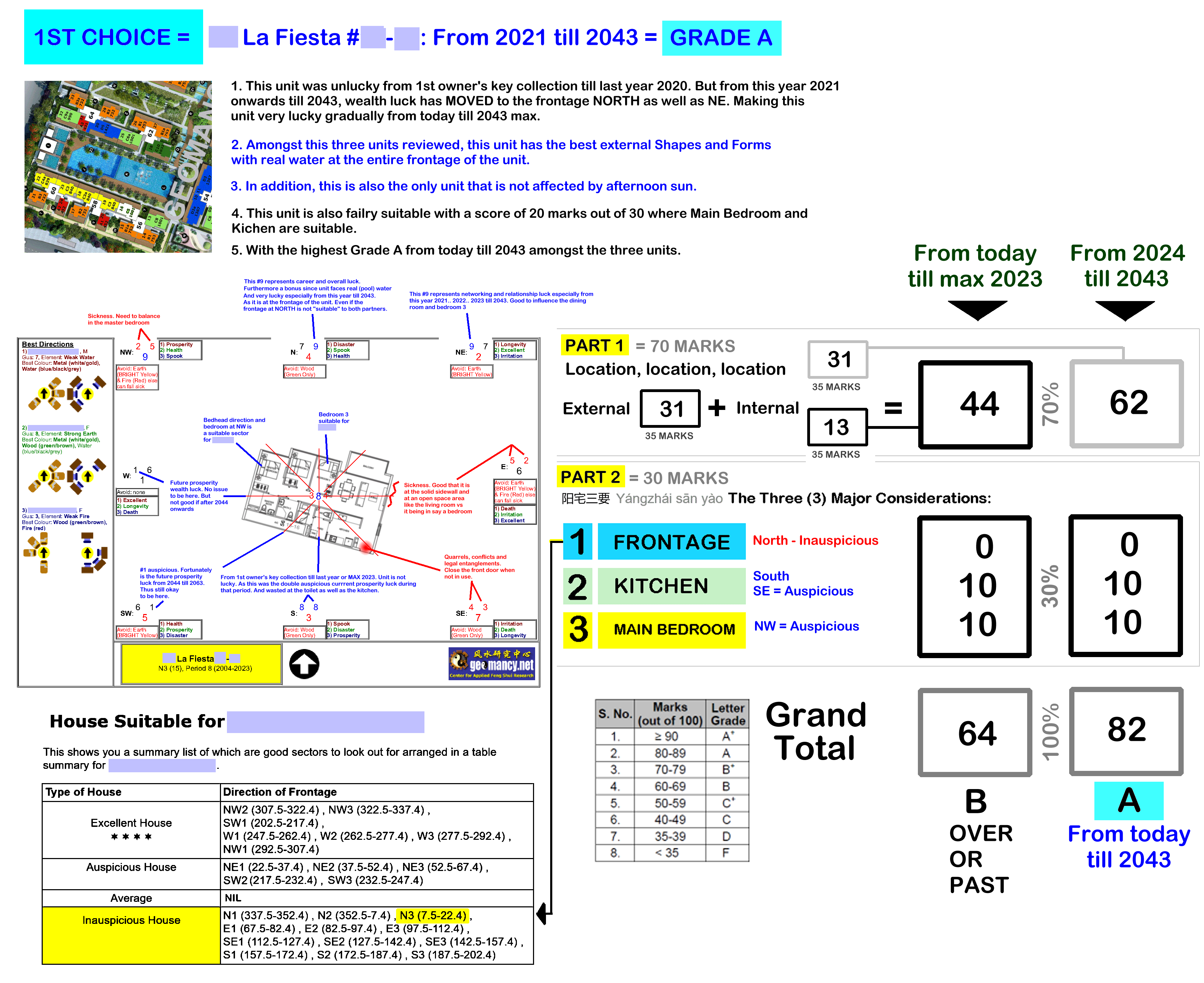 July 7, 20241 yr Author Staff AS WE ENTER PERIOD 9 FLYING STAR FENG SHUI FROM 2024 TILL 2043 WHICH UNITS ARE LUCKY? Part 1: How is the luck of the Internal Feng Shui of this unit? Part 2: External Feng Shui luck? Part 3: How suitable is the unit - Frontage, Kitchen & Main Bedroom? PART 1 = 35% Depends on the Internal Layout & Sectors - How Lucky? T.O.P. in 2014 +++ There are only two facing directions for this development: N3, E3, W3 or S3 For eg. standing inside the living room looking out of the balcony Good, Better, Best! N3 = Better luck under Period 9. From 2024 till 2043. +++ E3 = Luck should be better under Period 9. Again depends on the layout plan - Check what sectors are found at NE = Current Prosperity Career - Good especially if this is the living room or master bedroom & Overall Luck & NW = Current Prosperity Networking & Relationship Luck - front door?. The Rest! S3 = Less lucky under Period 9. As formerly double #8's at it's frontage had now become Past or Gone Luck! +++ W3 = Less lucky under Period 9 but depends on where is the living room. ++++++++++++++++++++++++++++++++++ But also need to review/consider the individual Internal Layout Plan & this is just part of the many considerations in a home purchase. However the above does not take into consideration things like: Kitchen/Stove at Inauspicious Fire @ Heaven's Gate or Poison arrow aimed towards the unit, proximity to common bin etc.. +++++++++++++++++++++++++++ +++++++++++++++++ ++++ PART 2 = 35% Location, location, location? Sha Qi? Poison Arrow? Watch Your Front, Sides & Back! POOR SCORE? THESE ARE SOME CONCERNS: Sha Qi or Poison arrow(s) from Sharp Corner(s) 天斩煞 (tiān zhǎn shà) = Tian Zhan Sha etc... +++++++++++++++++++++++++++ +++++++++++++++++ ++++ PART 3 = 30% How Suitable to breadwinner? Please note that has yet to take into consideration: 1. How suitable is the unit to the main breadwinner & 2. External Shapes and Forms of the unit TOTAL SCORE = 35 + 35 + 30 = 100% Get Expert Help: ++++++++++++++++++ +++++++++ How do you Feng Shui your home? Use your front door? Who are the Conservatives & the Modernist? Applies to Homes that previously T.O.P. between Years 2004 to 2023...