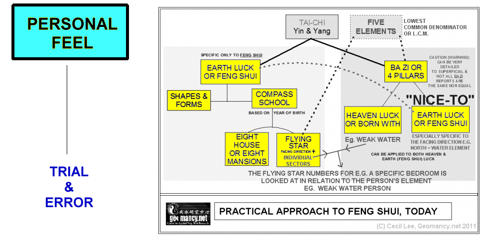 Posted April 5, 201312 yr Staff You wrote: "Since we moved here (one year ago) my husband and I have had many problems at work"Often, if one does not work from home or equally have an office away from home; then one may have to look at the Feng Shui of both locations. If, you feel that ever since you moved in to this new home and feel that most of your problems at work is a result of this; then, if one were to DIY using Feng Shui, can start looking at the home (first).However, it is not as simple as "pinning" or placing the entire blame on just the placement of the current workstation.In fact, if one were to truly try to apply Feng Shui concepts; it has to be as shown or highlighted in YELLOW in the sample attachment.What I mean is that majority of the boxes highlighted in YELLOW would be the concepts or tools used in Feng Shui to troubleshoot your issues (if any). Quote On 4/3/2013 7:09:04 PM, Anonymous wrote:Hello, I live in a duplexapartment and the onlyplace where I can put thecomputer and the desk is underthe stairs. Since we movedhere (one year ago) my husbandand I have had many problemsat work, I got a feng shuibook and see that thislocation is bad for yourworkspace, but the bookdoesn't give any tip to solvemy problem.Could you advice mehow can I cure the feng shuiin this area?? The desk iswood white painted and isoriented to the east, behindit is the living room and wehave 4 windows (west), thestaircase is straight, naturalwood and it has only treads,no risers. Thank you very muchin advance for yourhelp.