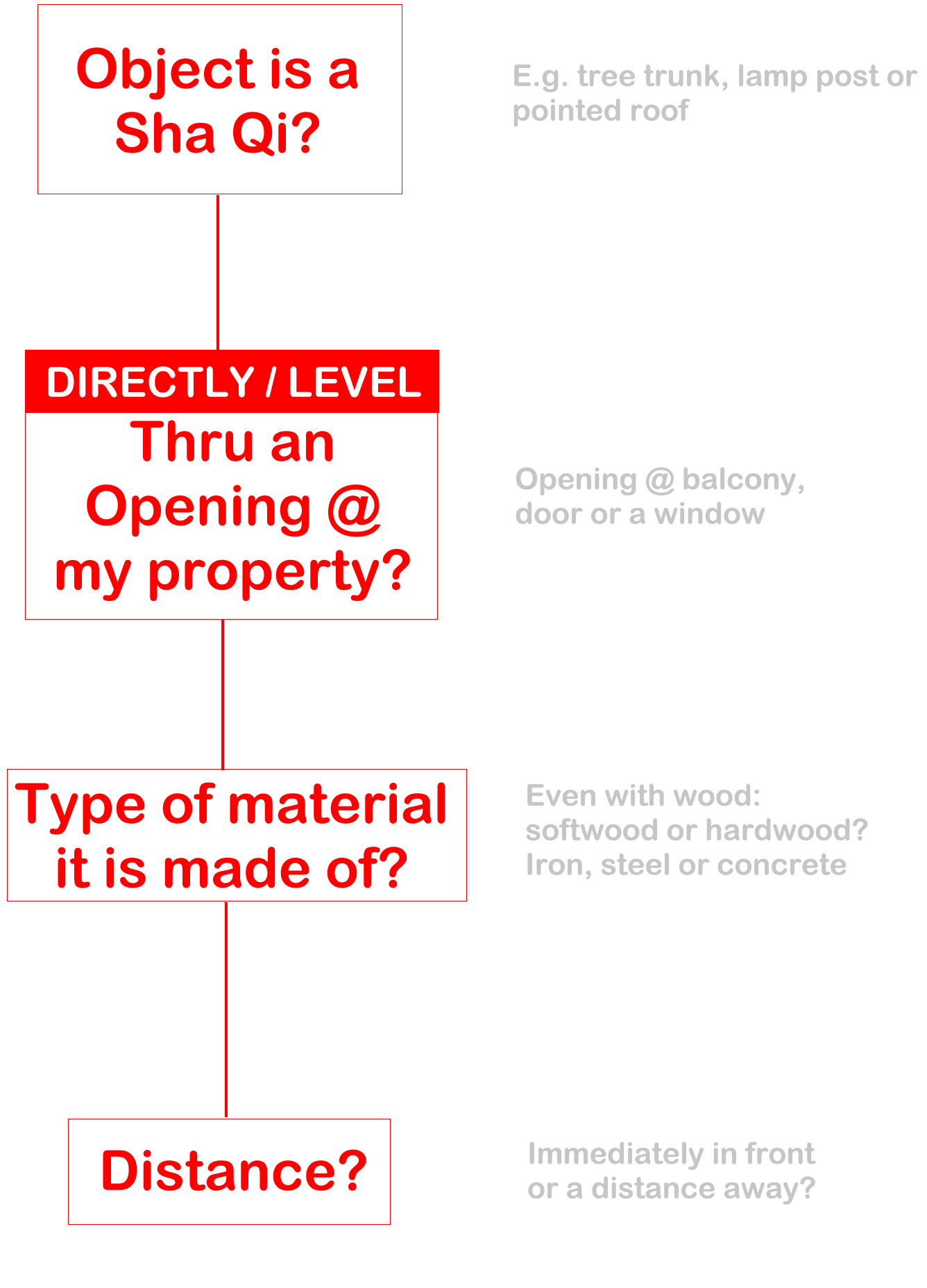 Posted July 17, 201312 yr Staff I have drawn out a simple chart with questions one could ask to determine if an object such as a street lamp or a tree trunk is considered as a sha qi or poison arrow?