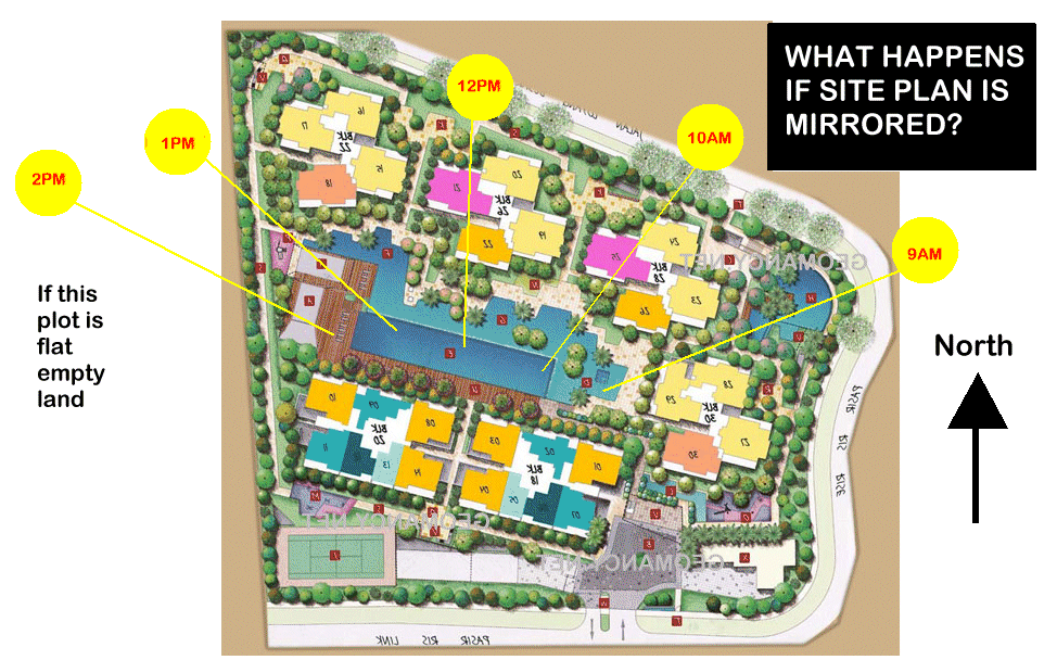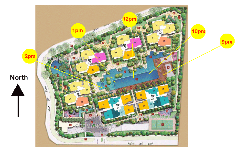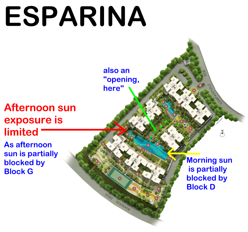 5. Thus even if this small development has a "valley" like structure enclosing the pool and yet open on both ends; it is fortunate to have sun rays blocked the majority of the time.