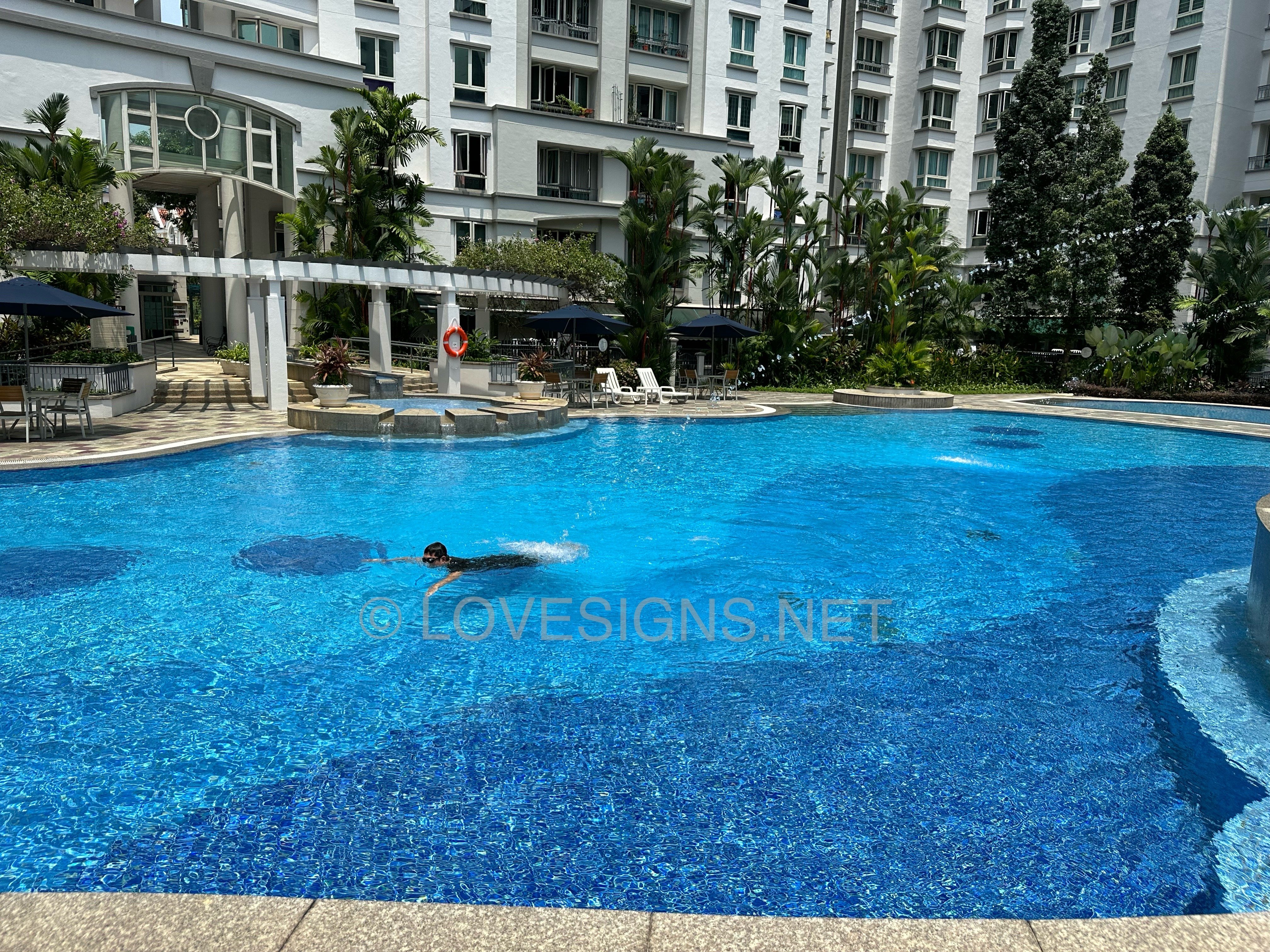 6. Perhaps, the only time most of the main pool has full sun rays is perhaps between 11.30am to 12.30pm.