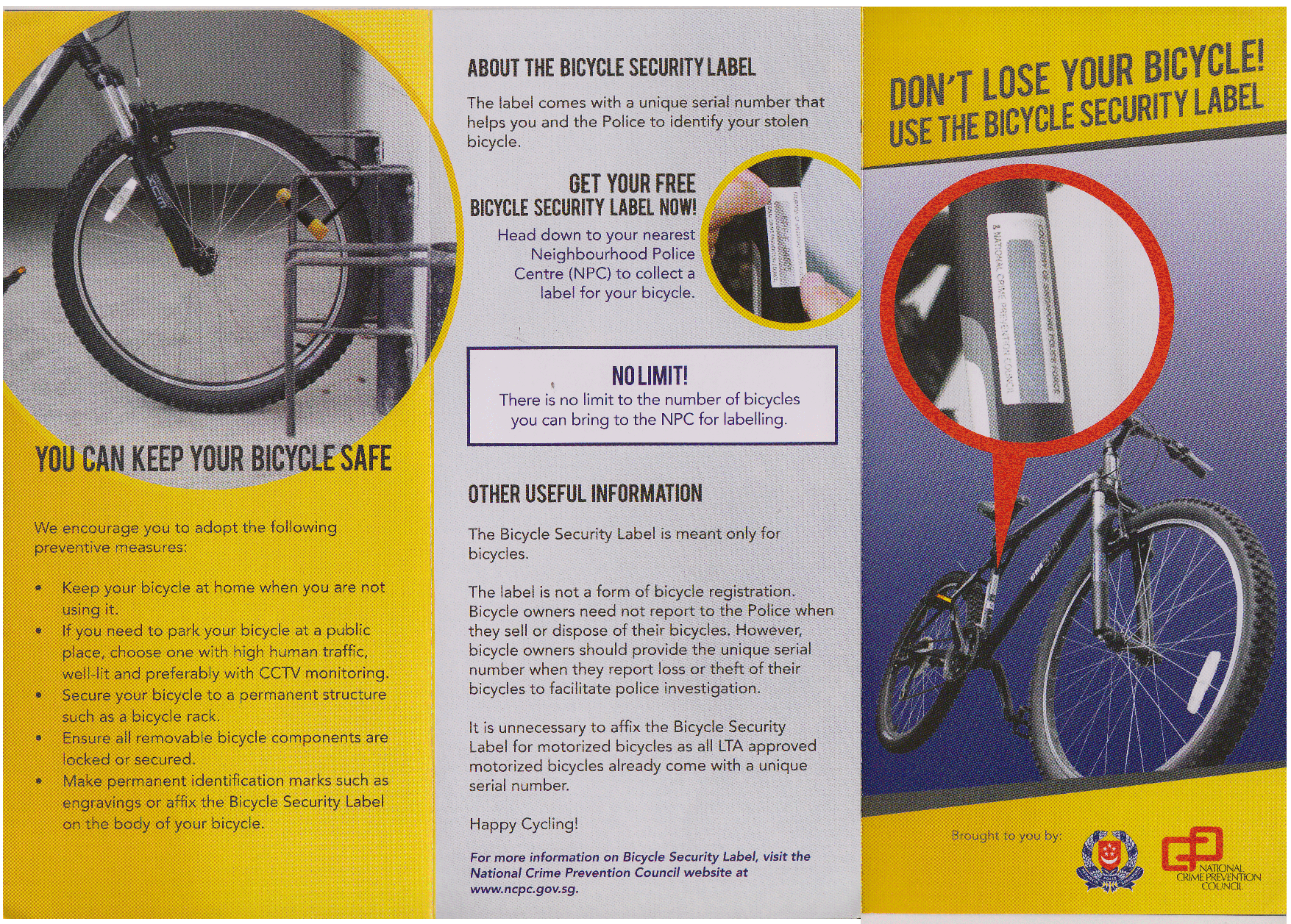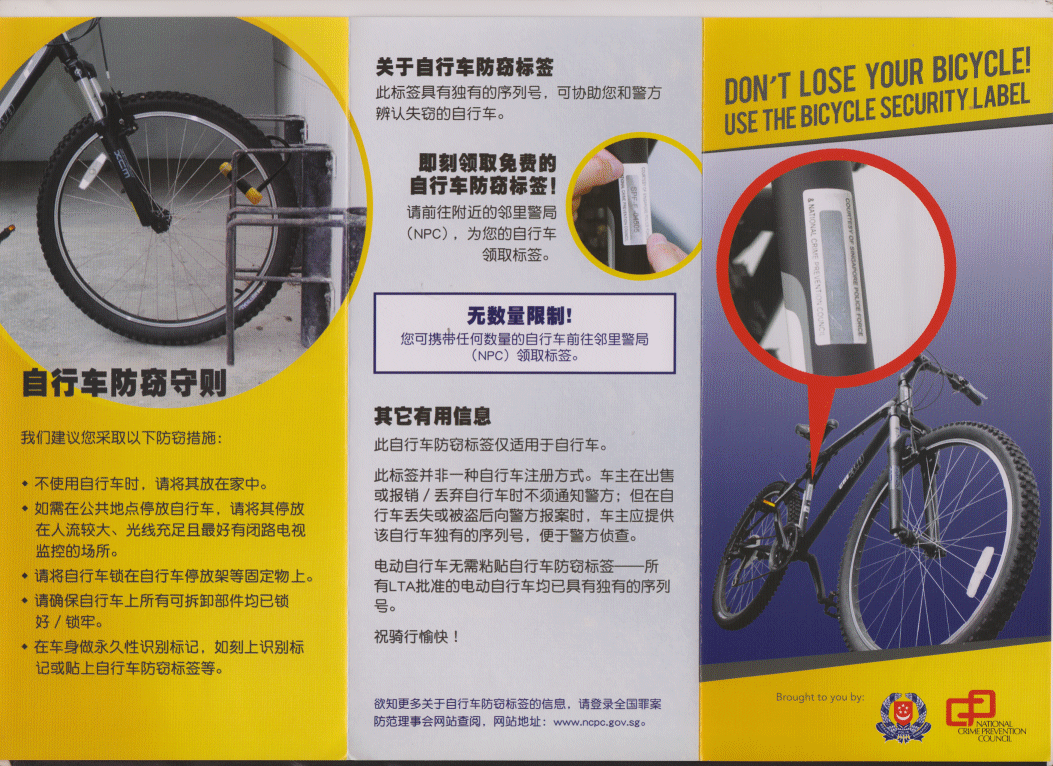 Posted April 15, 201213 yr Staff For info, for those who own bicycles, can get the labels from your neighbourhood police post.I know, it will not stop theft. http://solutions.3m.com.sg/wps/portal/3M/en_SG/Security_System/main/Products_Services/Labels_Software/