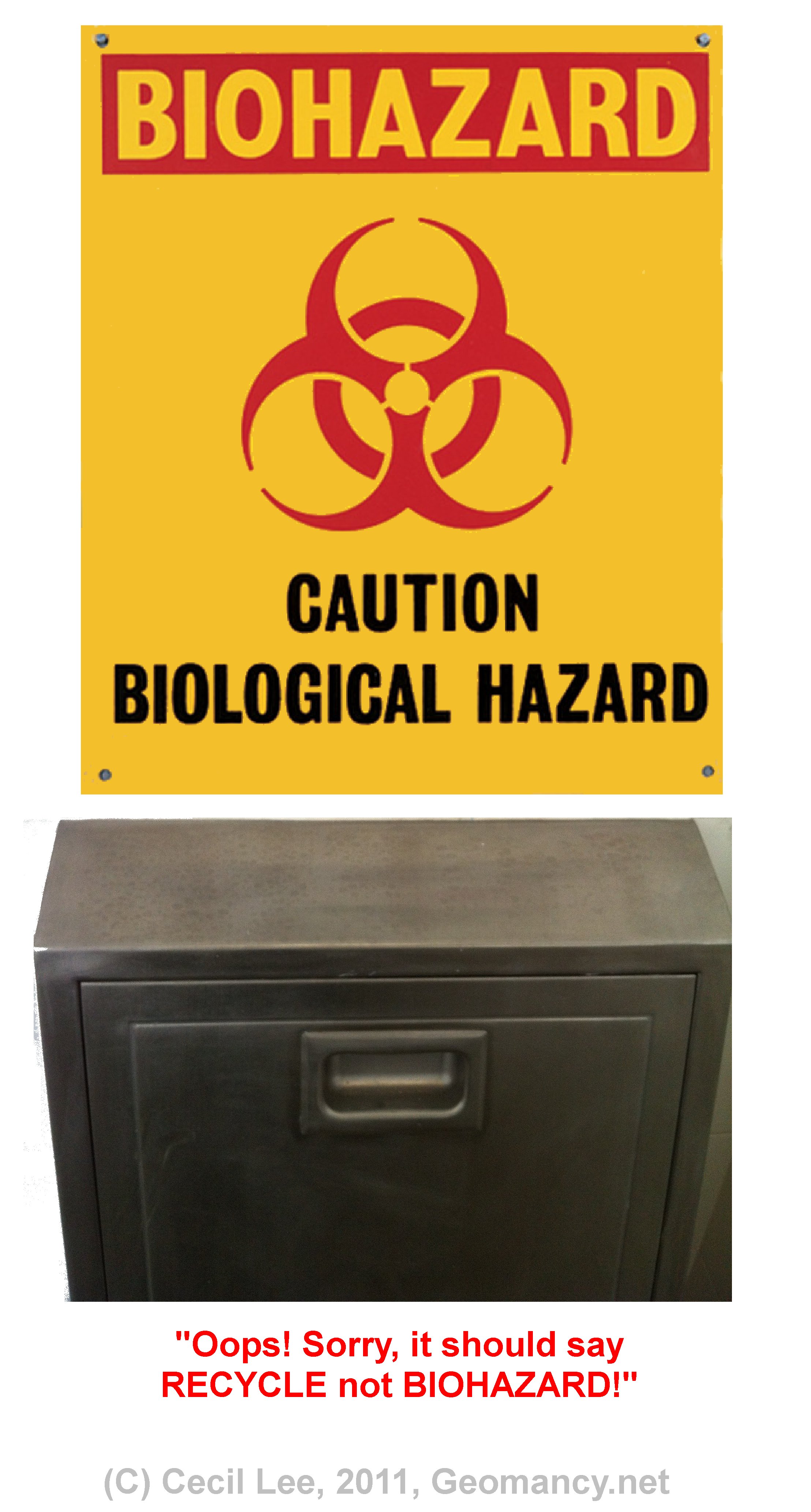 Posted November 9, 201114 yr Staff Hey! What is this sign doing at a common bin in a Public Housing Board Flat?You must have used the wrong signage! This is not a hospital or some bio facility, PLEASE! Quote On 11/9/2011 9:58:23 AM, Anonymous wrote:In this recent completed blockof flat in Punggol Arcadia; atthe common rubbish-cute or binarea; there are now two bins:one for regular rubbish andanother a recycling bin.