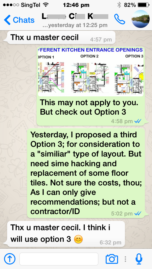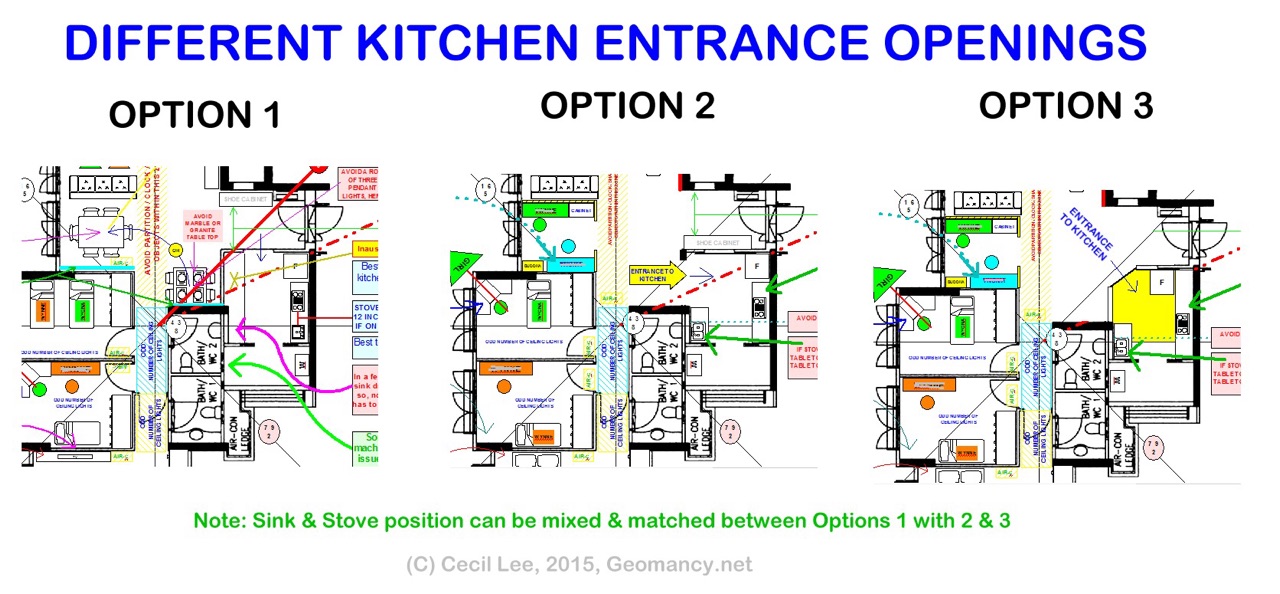 Posted February 23, 201510 yr Staff For the attached, type of layout, there are three possible kitchen entrances.One client after seeing all three options decided to opt for Option 3.