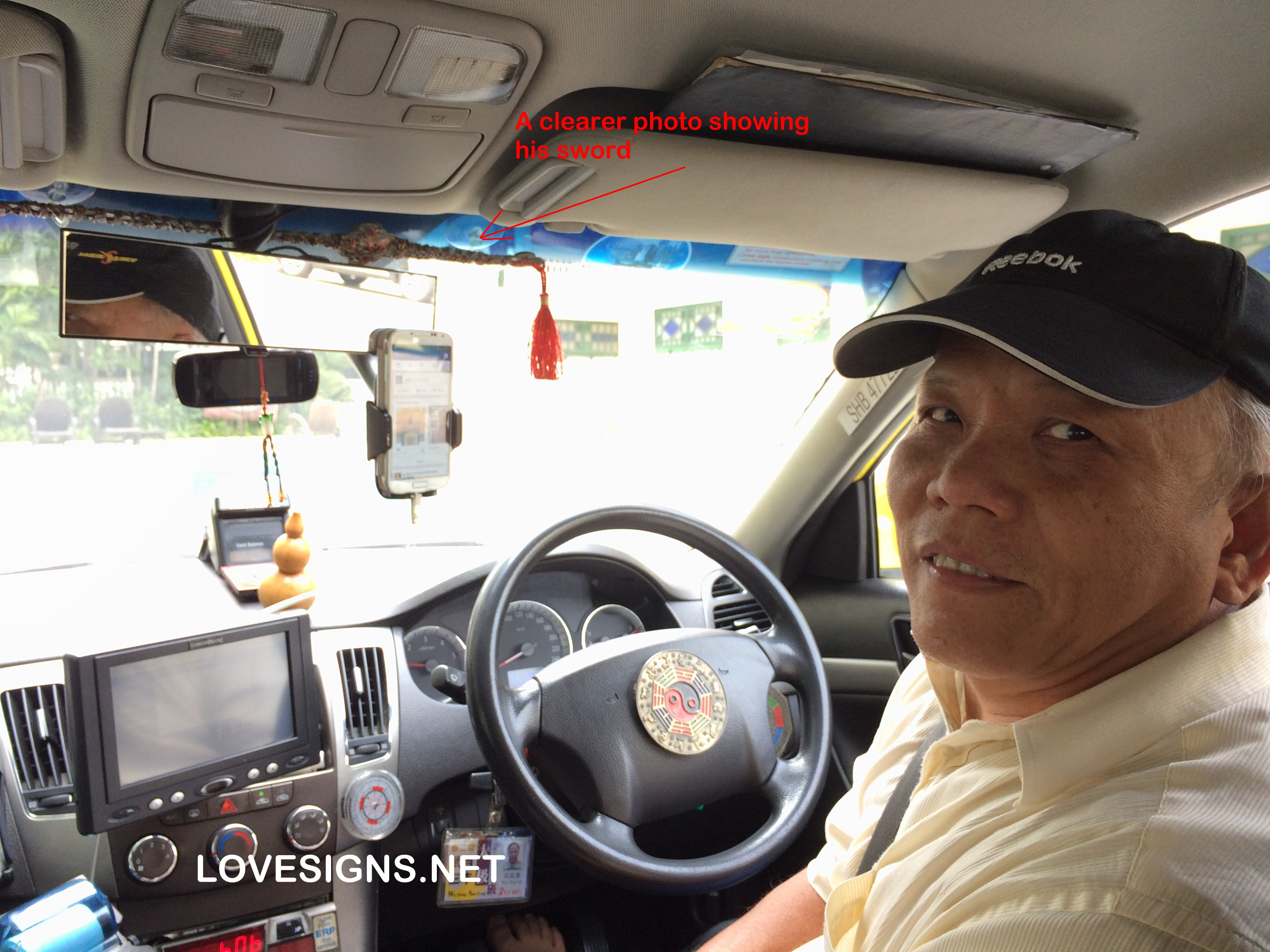 Posted August 20, 201510 yr Staff Recently, LTA has been giving out in conjunction with Shell; a Demerit-Free Driver decal or if one is a scooterist a Dement-Free Rider sticker! Coincidentally, this one of a kind taxi uncle has in one of the photos: I have highlighted in red-arrow(s) the various items found in his taxi: 1 sword made up of I-ching coins just above the rear view mirror. 2 luopans 1 hulu 1 ba gua emblem Have you come across, such a perculiar sight? Or is it a coincidence of all the above that he did not have any demerit-points? As it is very hard to find a Singapore taxi driver that does not have demerit-points?