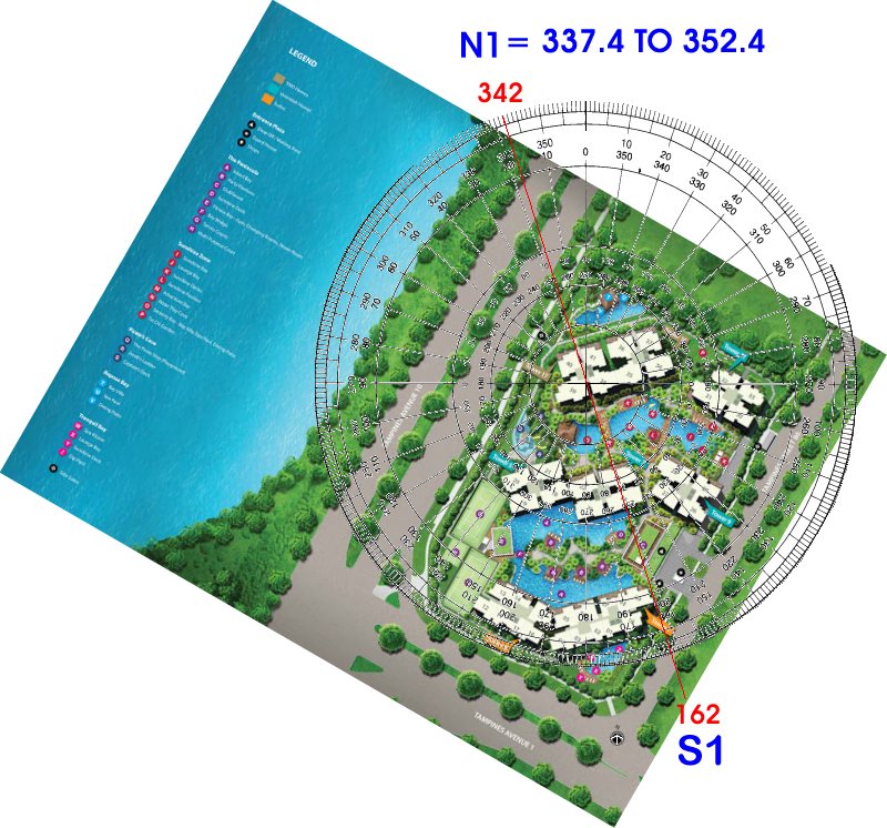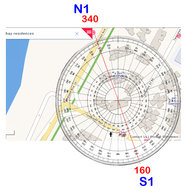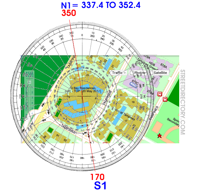 Posted October 21, 201510 yr Staff Part 2: Qbay Residences in Tampines & Flying Star Feng Shui 1. The Qbay Residences Sales Brochure shows Blocks: 5, 7 15, 17 facing either N1 342 degrees or S1 162 degrees. 2. I used the streetdirectory.com 's map and found the same Blocks: 5, 7 15, 17 readings also as N1 (350 degrees) and S1 (170 degrees). 3. There is a comfortable margin of variance between the two to place blocks 5, 7 15, 17 as within N1 or S2 directions. However, it is always good to confirm the readings on-site after T.O.P. Quote On 10/21/2015 4:22:12 PM, Anonymous wrote: Part 1: Qbay Residences in Tampines & Sha Qi or poison arrows from roof-line.The attached roof-line can be considered a potential Sha Qi or poison arrow subject to:1. The distance from the roof-line to the block/stack.2. Did the roof-line slice into an opening? such as the "open" windows and or balcony opening(s) if any.3. The good news is that this type of poison arrow is unit specific. And does not affect an entire block or stack if they are not at the same level of the roof-line from all FOUR (4) sides of the roofing-line.