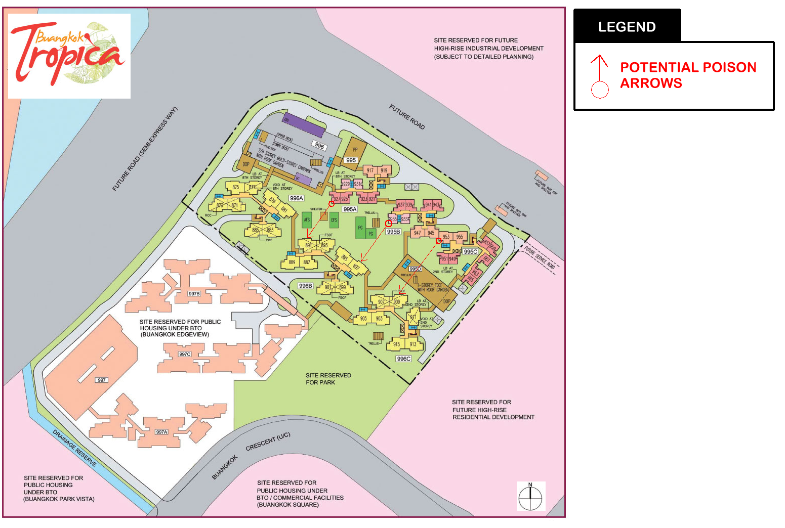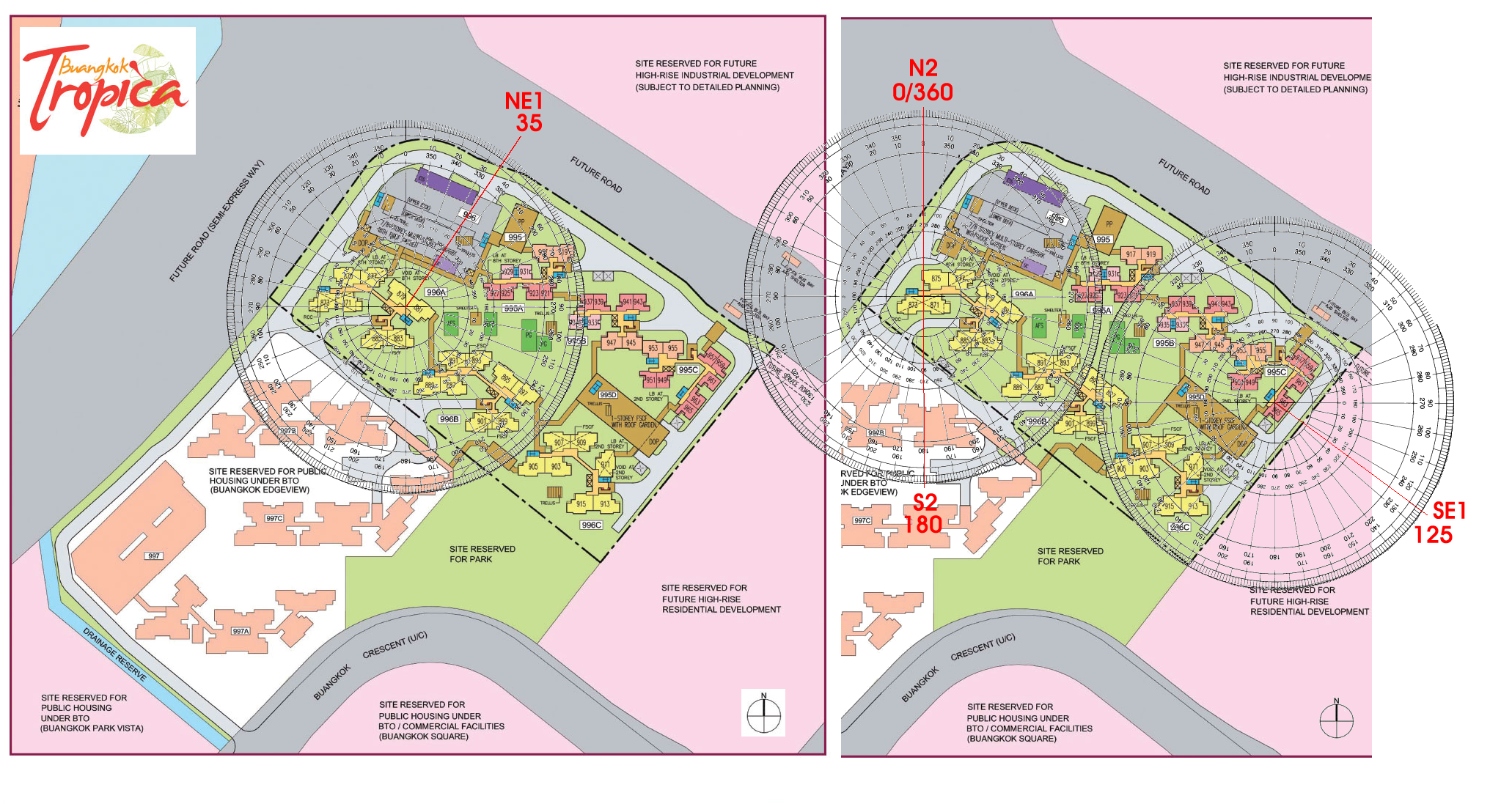 Posted October 28, 201510 yr Staff Buangkok Tropica Sales Brochure: Site Plan and Floor Plans buangkok-tropica.pdf Completed 2018 Part 2: Feng Shui of HDB Buangkok Tropica 1. Majority of the stacks /units in this development face flying stars S2. From now to 2023, this is indeed a good facing direction. As the facing direction has the auspicious double auspicious #8 wealth stars. 1.1. Thus especially stacks/ units889, 901, 903 and 905 even if they do not face a water position; these two stacks/ units face what is called "virtual water" or clear space; directly overlooking the site reserved for a park. 2. Other facing directions include: N2 direction. For example stack 875 and 877. But for such stacks the wealth stars are truly wasted at the "rear" of the unit where the kitchen/ yard is. 3. Some of the smaller units; for e.g.961, 963 & 965 are SE1 facing. Quote On 10/28/2015 1:39:48 PM, Anonymous wrote: 1. Part 1: Feng Shui of HDB Buangkok Tropica and potential poison arrows from sharp corner of neighbouring blocks / stacks.2. Stack 927 has potential poison arrow aimed towards stack 891.3. Stack 935 has potential poison arrow aimed towards stack 897.4. Stack 953 has potential poison arrow aimred towards higher floors (2nd storey and above) of stack 909.