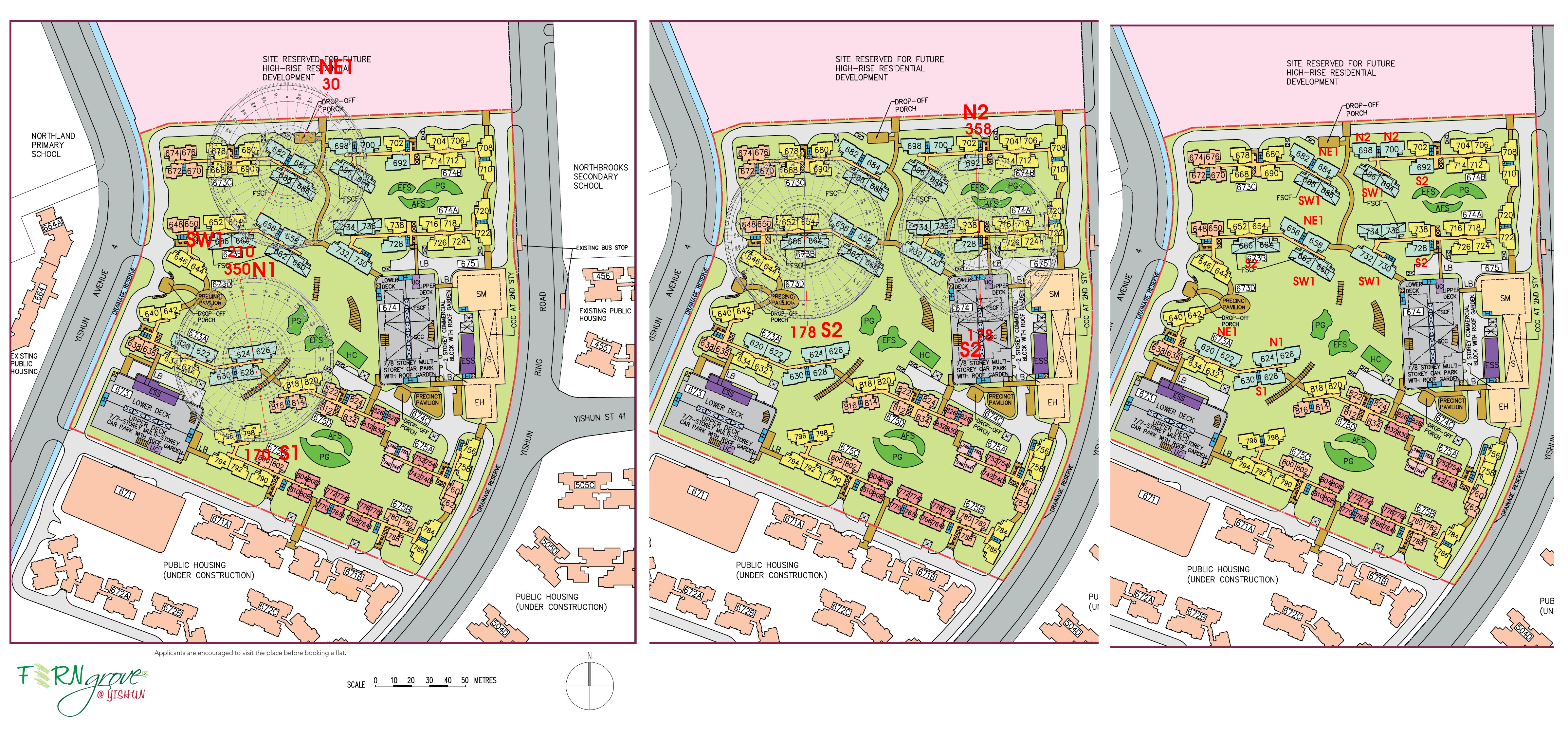 Posted October 30, 201510 yr Staff Fern Grove @ Yishun Sales Brochure: Site Plan and Floor Plans fern-grove-@-yishun.pdf Lease Commencement Date: Year 2017 1. Feng Shui of HDB FernGrove @ Yishun and Flying Star Feng Shui of 5 bedroom type:- 2. N1 facing stacks = 624 & 626 with S1 facing stacks = 628 & 630. N1 has the auspicious double 8s at it's frontage. Good if the frontage has a water position. 2.1 Good if the master bedroom is located at NE sector. As it has good auspicious star combinations of MS#6 + WS#1. 2.2 If a bedroom is located at East is good for a bedroom cum study. 2.3 The rest of other sectors has inauspicious stars. And may need to be disarmed. 2.4 S1 The combined auspicious wealth stars MS#8 + WS#8 are at the "rear" of the unit. Such a waste as usually this is the kitchen & yard area. 2.5 It will be good if a bedroom is located at East sector: good for studies. 2.6 If the main entrance is located at NE, this will be excellent as there are good combinations of MS#1 with WS#6 in this sector. 3. N2 facing stacks = 698 & 700 with S2 facing stacks = 692 & 728. Under Flying stars; there is a difference between a N2 facing vs a S2 facing chart. 3.1 Here, under N2 facing; the combined auspicious wealth stars are wasted at the rear of the home. Here, "rear" often means wasted at the kitchen / yard area in stead of at the frontage like that of an S2 chart. 3.2 S2. Stacks are the best stacks for a East group person. As both frontage enjoys the double auspicious #8 wealth stars. And furthermore their facing directions has water. Bring great wealth. 4. NE1 facing stacks = 620, 656, 658, 682 & 684 with SW1 facing stacks = 686, 688, 694, 696, 730 & 732. 4.1 NE1. Has the auspicious water wealth #8 star at the frontage. Thus, units with water position at the frontage (balcony side) can enjoy good Feng Shui. If so, the sum-of-ten can be activated for : Health, wealth and family luck. If the unit is not facing a water position, then best to place a water position at the balcony area to activate the luck. On the downside; the other sectors in such a home has bad stars that best to be disarmed or neutralised. 4.2 SW1. As the water wealth #8 is at the frontage; water at the frontage is good. It will be advantages if the unig faces a pool of water or activate a water position at the balcony area. As such overall, the unit can acivate the sum-of-ten. Need though to disarm bad stars in many sectors of the home. To disarm health related considerations.