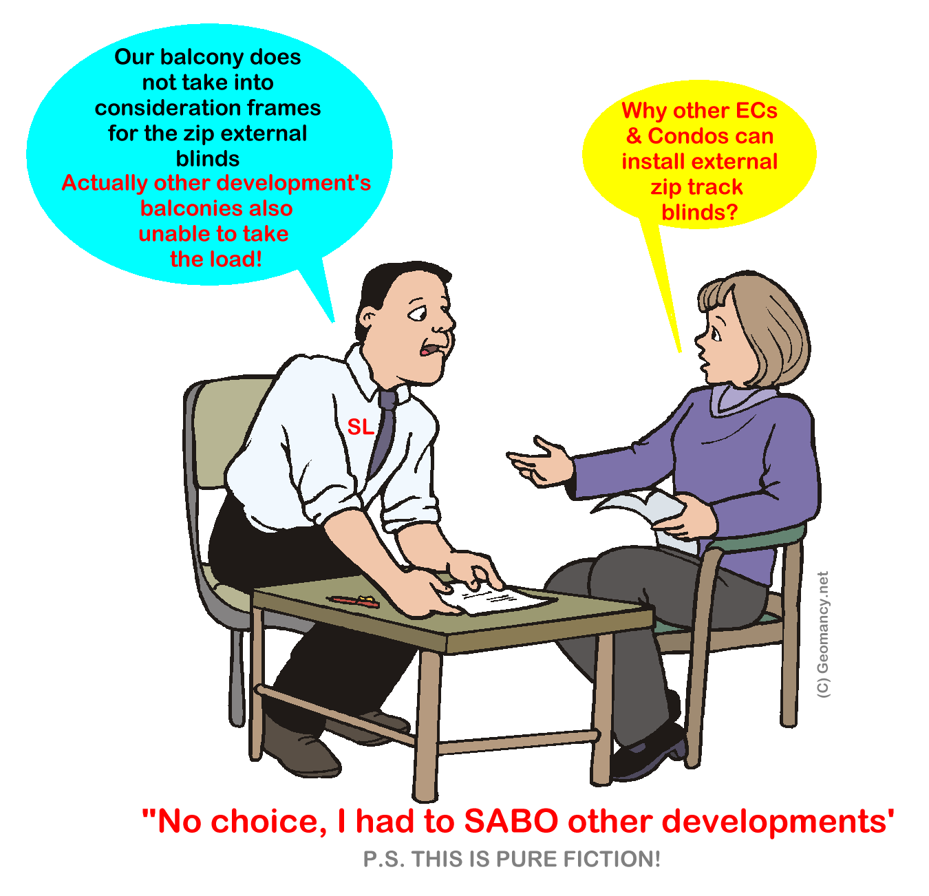 October 4, 20187 yr Author Staff Case Study: Tree trunks as a potential poison arrow(s) A. In my opinion, both the landscape planner and/or the landscape company: either way did a bad job in the placement of trees. 1. Numerous trees are positioned directly in the center of the living room balcony, making them challenging to treat. This is particularly true for the trunks of the palm trees. 1.1 When under the influence of Sha Qi (poison arrow), a tree trunk resembles a knife directed towards the unit's entrance(s). 1.2 It is possible that the present pause in the installation of zip track external binds has not been effective. If they were to be installed and drawn, this could serve as a viable option. B. Why cannot install Exernal framed blinds? 2. I find it difficult to comprehend: the recent prominent developments (there are numerous) such as the nearby The Vales, which features white, ivory, and brown external blinds, compared to those at Sol Acres, Wandervale, and others... are permitted to install the zip track (frame) external blinds. There seems to be no concern regarding the load on the balcony in these developments. 2.2 However, for Sim Lian to stop this installation and inform owners that it may impact the load on the balcony is... ??? 2.3 In this context, I would like to pose a question to Sim Lian: Why are other developments permitted to do this? Why are you unable to proceed and use the issue of overloading on the balcony as a justification? 2.4 In my view, this casts a negative light on the developer. Are you perhaps suggesting that your quality and the newton-load capacity on the balcony is "inferior" compared to other similar developments? 2.5 Does this imply that MCL's Sol Acres is constructed to a higher standard than yours? etc.. C. Often the overlooked area is for the welfare of the guards / Guard Room and its surroundings 3. One can say that this is not an issue as we pay the company. But this helps humanise & also provide shade. 3.1 The only plus side is the guards are smiling as the development is North-South and with such a huge roof-line; 3.2 it provides a reliable shade. And good news for the guards, no afternoon sun!
