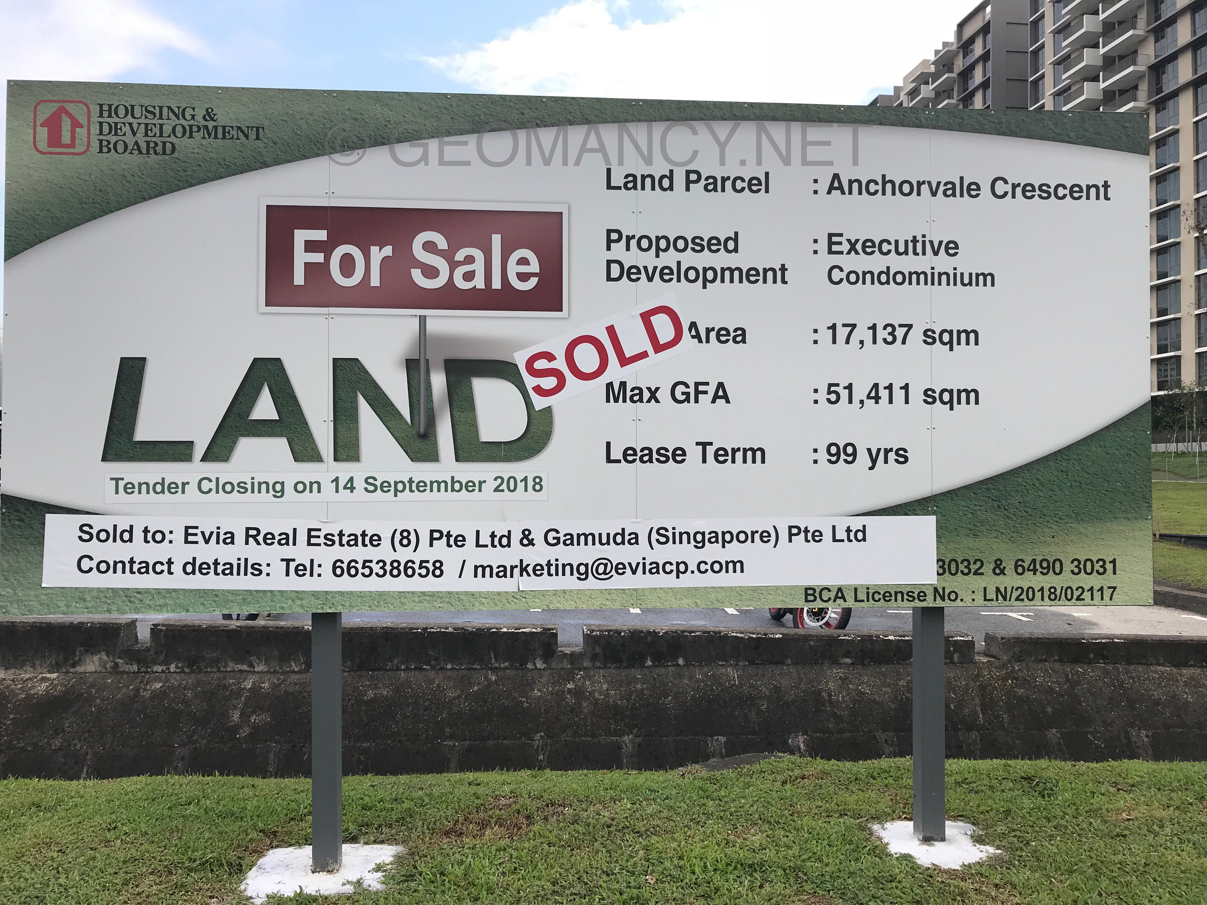 June 21, 20196 yr Author Staff On 8/11/2018 at 6:16 AM, Cecil Lee said: Congrats! Ready... This site: Anchovale Crescent EC site (formerly a heavy vehicle parking lot) is now sold! The top or successful bidder was by : "Evia Real Estate and Gamuda". These two firms have joined hands to become the highest bidder for the executive condominium (EC) site at Anchorvale Crescent in Sengkang. The winning bid was S$318.89 million or S$576 per square foot per plot ratio (psf ppr). The next unsuccessful bidder: Qingjian Realty lost the site by a mere S$899. The third highest offer was from Hoi Hup Realty and Sunway Development at S$307.3 million or S$555 psf. What a miss by Qingjian Realty ... given that majority of it's developments especially inZ Residences has just T.O.P. and perhaps... it was ready to start on new projects...