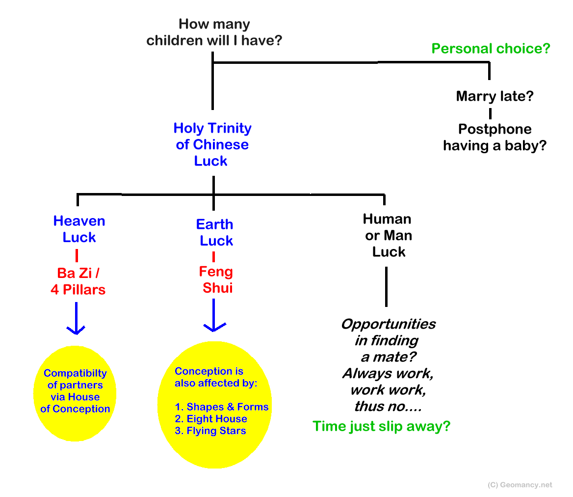 1.5. Thus, House of Conception in itself is similar to the bamboo pole. It is but one of the many components within a ba zi chart. Frankly, once we have the correct chart e.g. birth-date; a skilled geomancer can tell revealing things and the probability of conception for this pair of person.