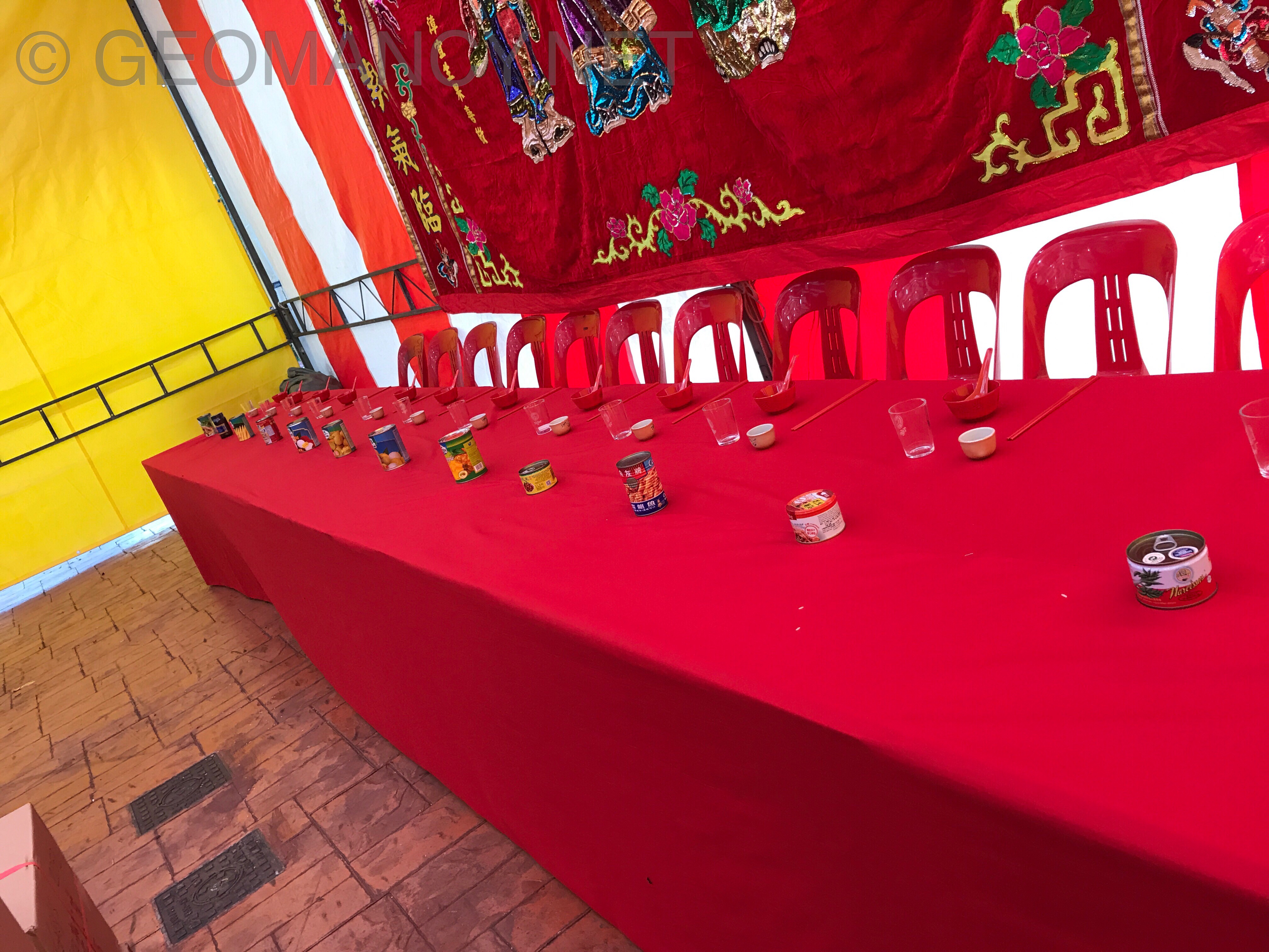 September 8, 20178 yr Author Staff More photos.. It is Common for the Organizers to set a long table and place "empty" chairs. And each table and chair may have a cup of tea and in this case assorted tins of can food.. See photo below:/