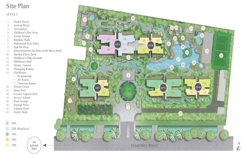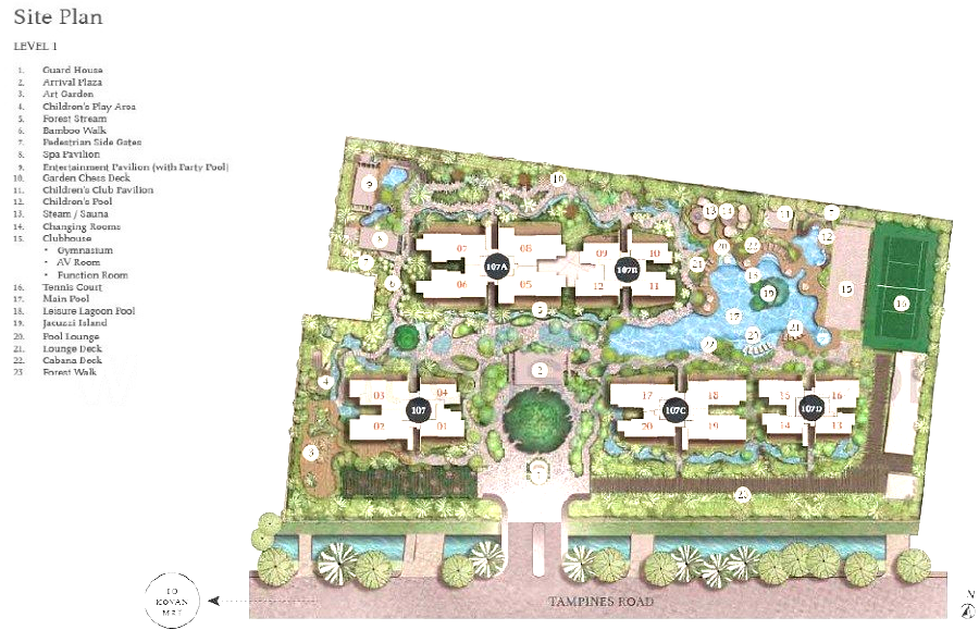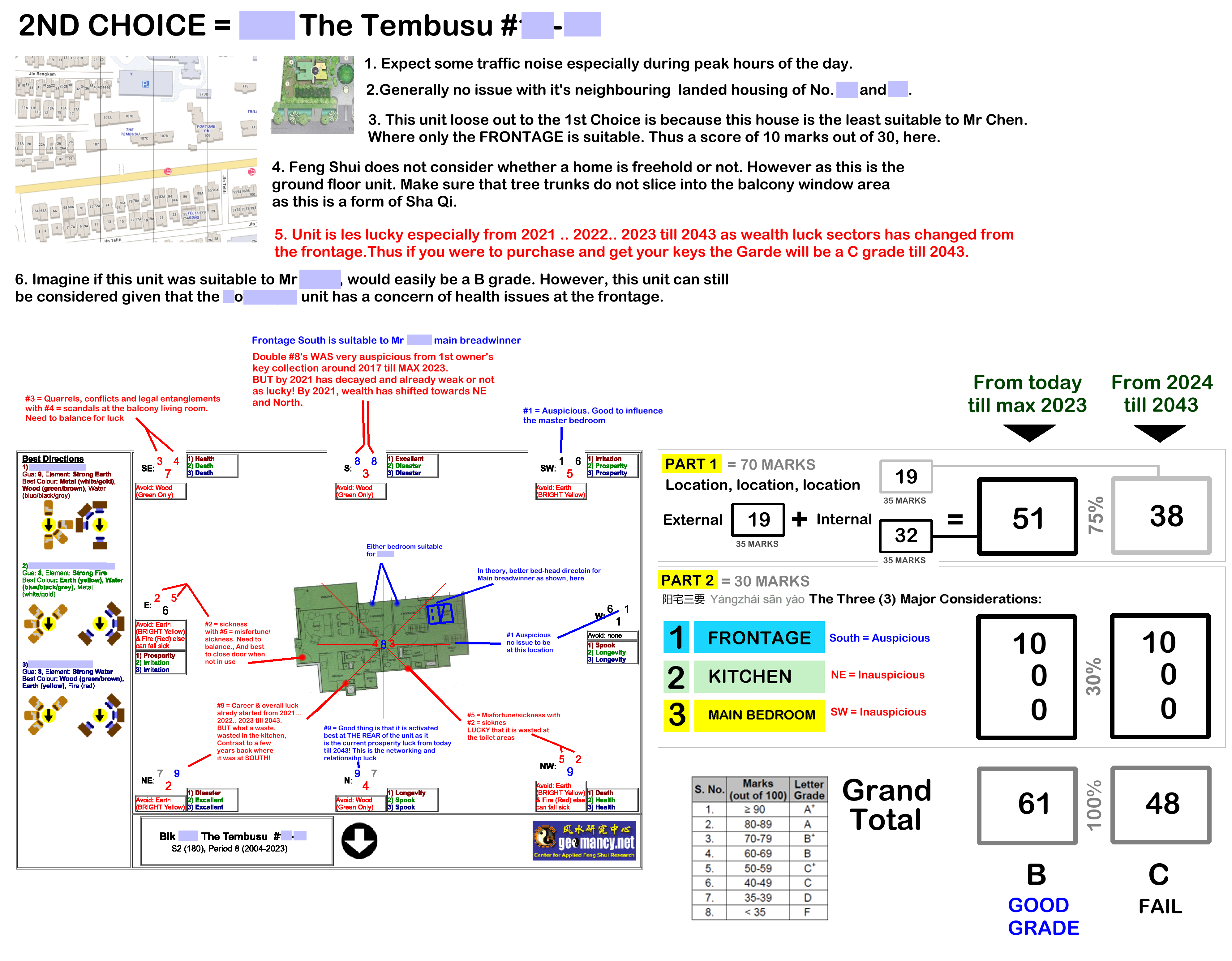Posted October 10, 20169 yr Staff Freehold. T.O.P. 2017. Period 8 Flying Star Feng Shui The Tembusu and "The forms (Shapes and Forms) in some instances prevail over the stars (Flying Stars) in this development" 1. The Tembusu @ Tampines with five blocks (2 larger and 3 smaller blocks). 2. Trilive which is equally a small development is just one site or rather a building (Fortune Park) away. 3. In this development the Flying Stars are either N2 or S2. Even though the compass bearings are 5 degrees off true North or South. 4. There is also a Multi-storey car park (HDB MSCP BLK 373A) covering approximately 2/3rds of the Northern stretch of The Tembusu. 5. As MSCPs are no higher than 6th storey; just be extra careful of standing inside a unit's opening such as a balcony seeing the roof lamp sliding into the unit. As this is considered as a Sha Qi or poison arrow. 6. It is much easier to neutralise such a poison arrow if it is a window opening vs the lamp post directly tangent to or in full alignment aimed towards especially the middle of a balcony. 7. All stacks in this development either face Flying Stars Period 8: N2 or S2 direction(s). 8. N2. Stacks/Units has the double auspicious #8's wasted at the "back" of the unit. Thus not as favourable as say the S2 facing stacks. 9. However, the saving grace for this development is that: some stacks of Blocks 107C and 107D face a pool of water. 10. Of course in theory, some would question why I mentioned Para 8 above and this contradicts above Para 9. 11. This is because of this motherhood statement:- "Forms prevails over the stars". 12. For example: even if say the South (S2) facing stacks are SUPPOSE to be better than North (N2) stacks; 12.1 But wait a moment... there is no real (YANG) water where S2 stacks are facing. 12.2 Furthermore, even though the roads are like water courses be it the service road of the development or the main road = Tampines Road; 12.3 However, based on Shapes and Forms (The Forms) even if the STARS (Flying stars are considered good); don't you agree that certain stacks facing the pool view (plus the MSCP car park is a distance away) is OVERALL better? 13. Thus in this development even if all stacks that are south facing S2 although enjoys the double auspicious #8 wealth stars at their frontage may seem to be better. But this may not necessary be better than what I mentioned above Para 9. 14. The major concern for a S2 facing chart is that so often, the kitchen may be located at NW sector. Which in Feng Shui is called: "Fire at Heaven's Gate". And this can affect the male breadwinner's career luck. 4. Thus for a South facing (S2) best to select a unit where the kitchen is either at North or North-east sector is preferred.