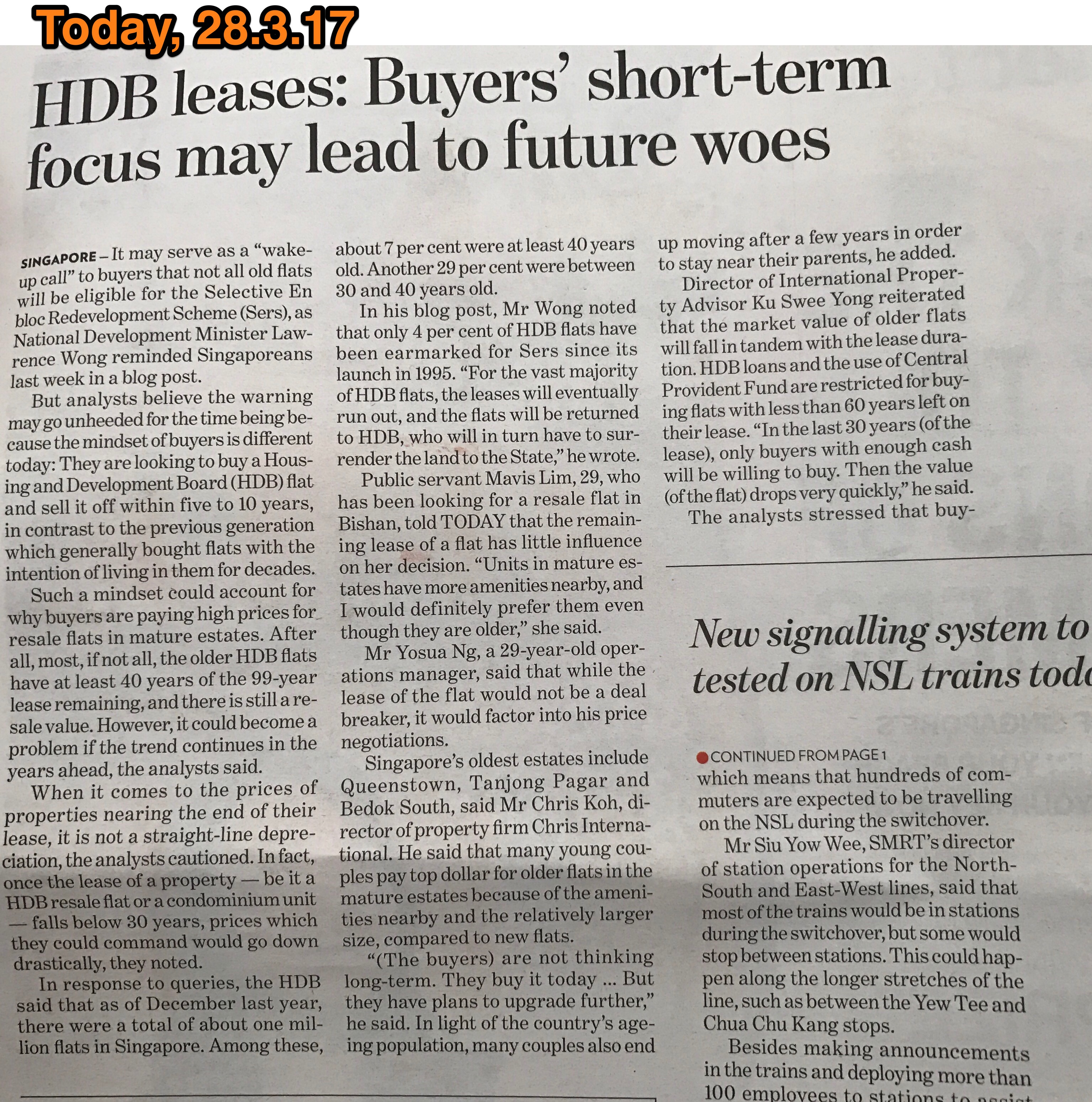 Posted March 25, 20178 yr Staff Squatters of SGP land caveat emptor... Minister for National Development (MND) Lawrence Wong says that majority of occupiers (apologies I mean squatters) of 99-year leased homes have to surrender their flats when the lease expires. As government has no means to en-bloc each and every flat.. The Minister wrote on the MND blog: “For the vast majority of HDB flats, the leases will eventually run out, and the flats will be returned to HDB, who will in turn have to surrender the land to the State.” “Do not assume that all old HDB flats will be automatically eligible for the Selective En bloc Redevelopment Scheme, or SERS. SERS, as the name implies, is on a selective basis.” Hopefully by then...one never knows what our future government will be like. Only time will tell.