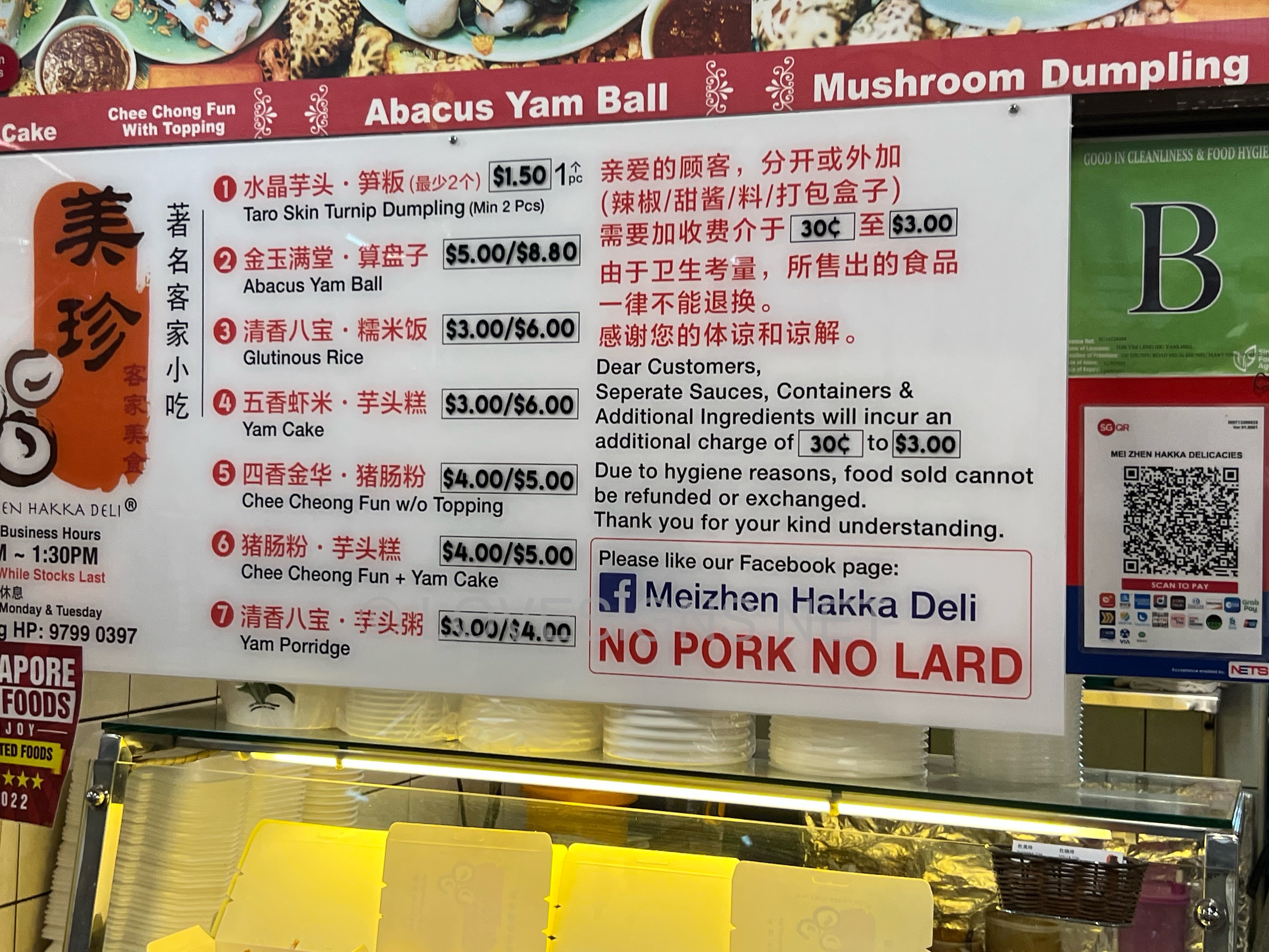 November 17, 20223 yr Author Staff This Hakka Delicacies Stsll has been around for as long as this market cum food court has existed. Known as Mei Zhen Hakka Delicacies. Most well known is their Hakka Abacus Yam ball & Yam cake. The rest like the porridge is of Hakka style. Other items sold are unfortunately, common to all other Chinese dialect groups. Perhaps slight differences in the Chee Cheong Fun of say the Cantonese or local style ones. $5/- consisting of 1/2 yam cake + 1/2 chee cheong fun: