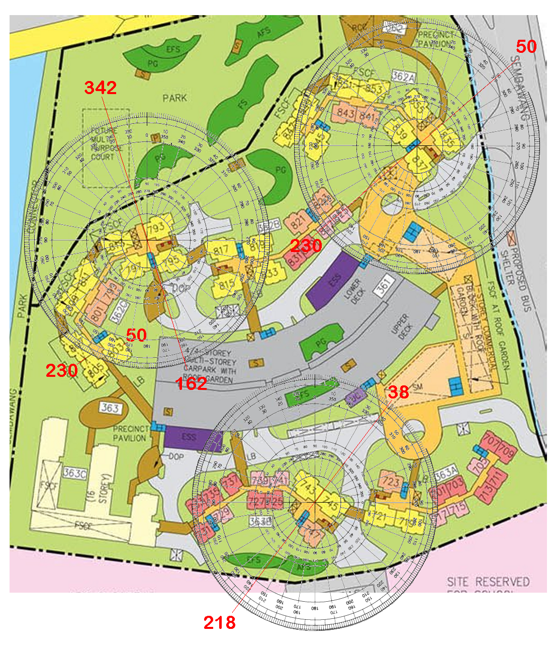 June 30, 20178 yr Author Staff HDB Sun Natura One has to balance the planning of the HDB blocks and then try to figure out where to place the precinct pavilion. And many instances planners either plan the HDB blocks/stacks/units around the Precinct Pavilion or more discretely at a corner of the development. I find that HDB Sun Natura is a sterling example of the placement of this develoments precinct pavilion. Take a look at what I mean by it. The two precinct pavilions (in red) are at both corners of the estate and diagonally to each other. As compared to my earlier comments on HDB Fern Grove at Yishun, this placement takes into consideration the sensitives of residents. Thus even if there is a wake/funeral on a joyous occasion like Chinese New Year.. it will certainly not dampen the festive moods of those who are in full view of the pavilion. The two precinct pavilions are diagonally opposite each other and tucked at both end-corners of the estate:- This arrangement get's the THUMBS UP! Flying Star Feng Shui of majority of 4 Bedroom types:-