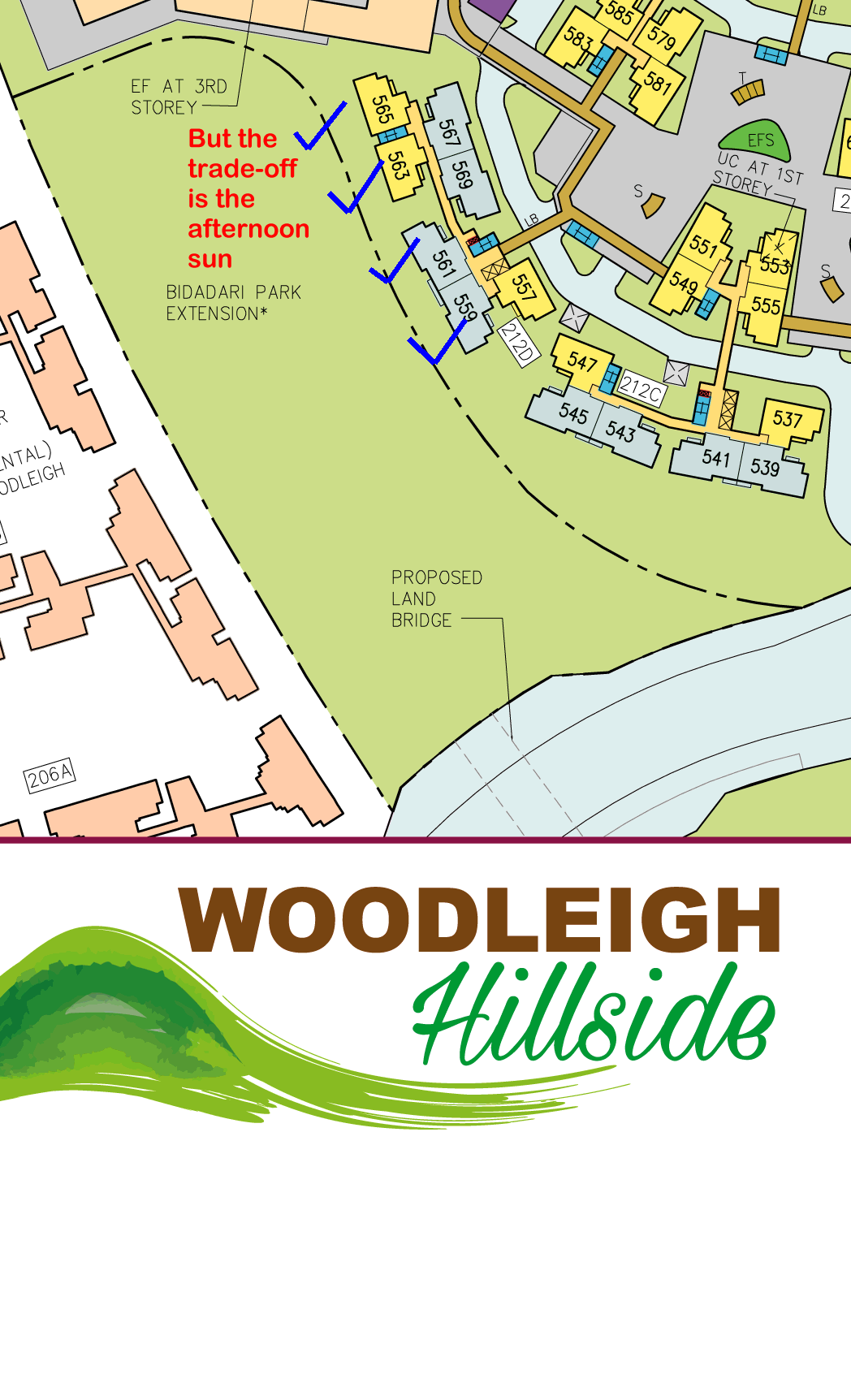 Posted July 30, 20178 yr Staff Sales Brochure: Site Plan and Floor Plans woodleigh-hillside.pdf HDB Woodleigh Hillside BTO flats Based on Shapes and Forms Feng Shui:- Blk 212D 565, 563 (4 Bedrooms) 559, 561 These four stacks/units are considered amongst the best in this development. But the unfortunate trade-off is the afternoon sun....
