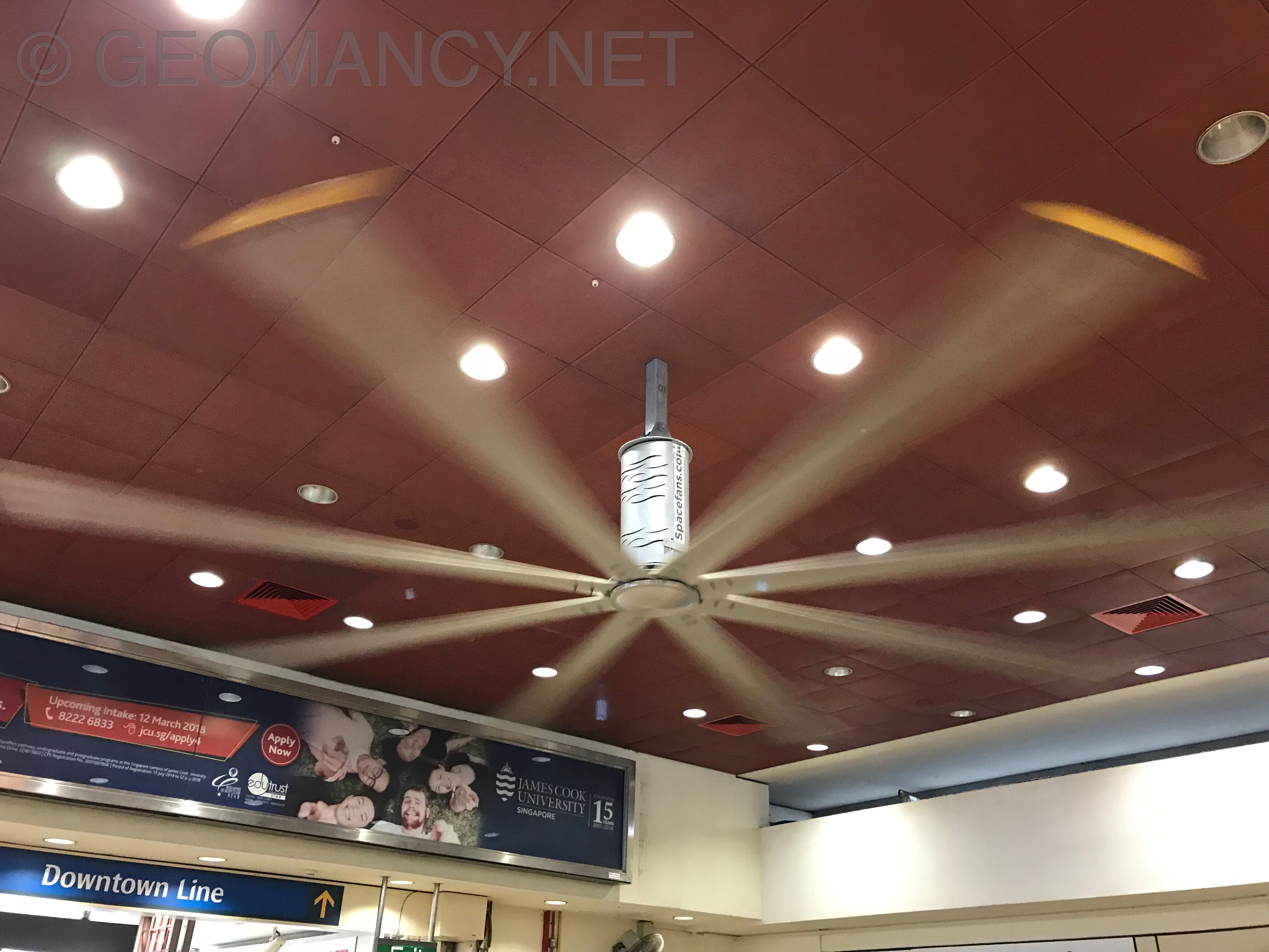 January 11, 20187 yr Author Staff This ceiling fan commonly found at MRT stations have eight blades. The more blades means less vibrations and smoother and more powerful wind flow.