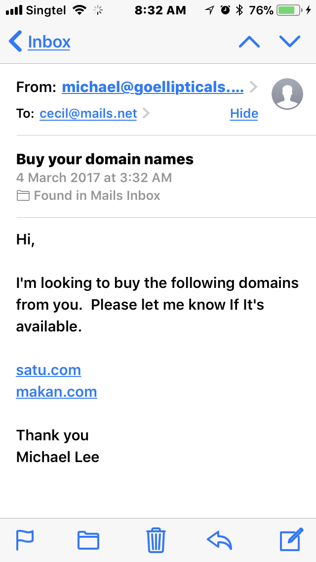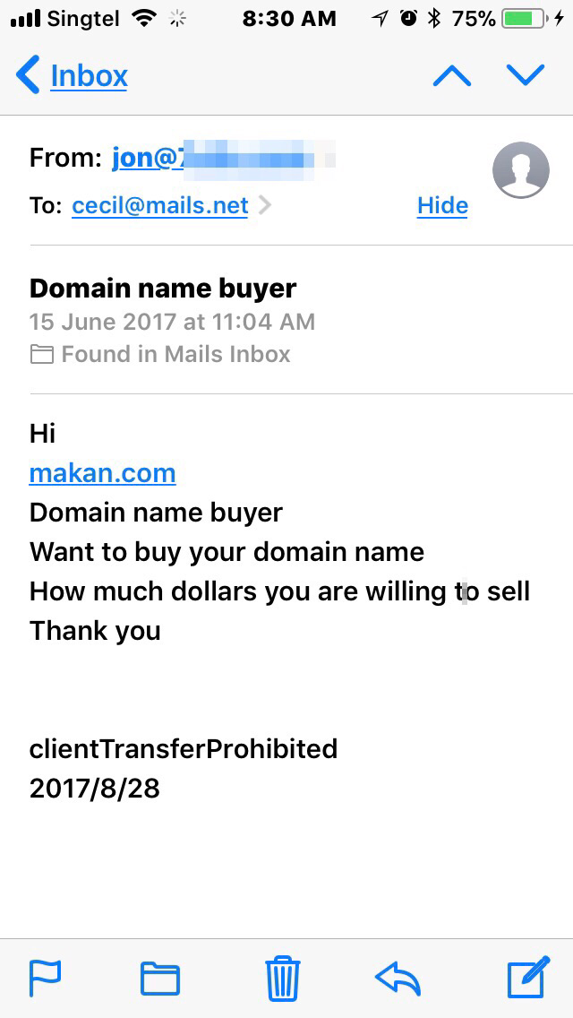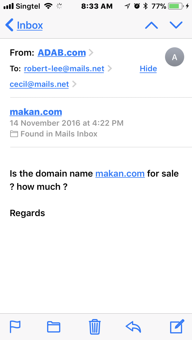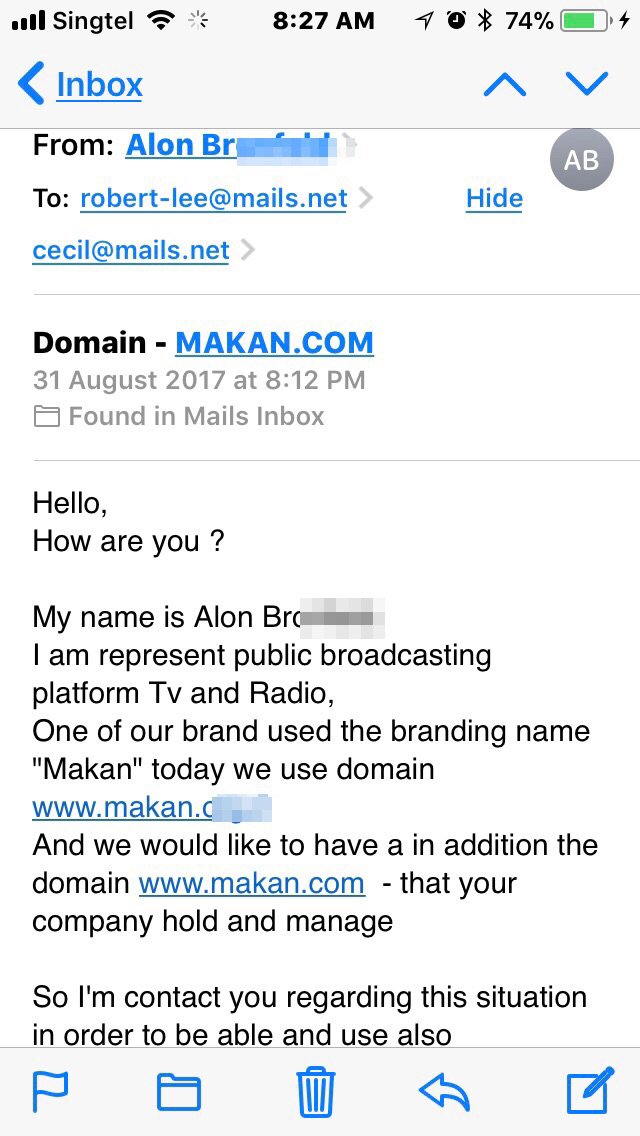 Posted November 10, 20178 yr Staff I own several domain names ... this Makan.com is certainly one of the hottest... As many locals, Malaysians and Indonesians know it as “eat”. In the Middle East ... Makan means .. house... Almost weekly.... I got requests all over .. for it...hmmm.. Any takers for tertiary.com ....